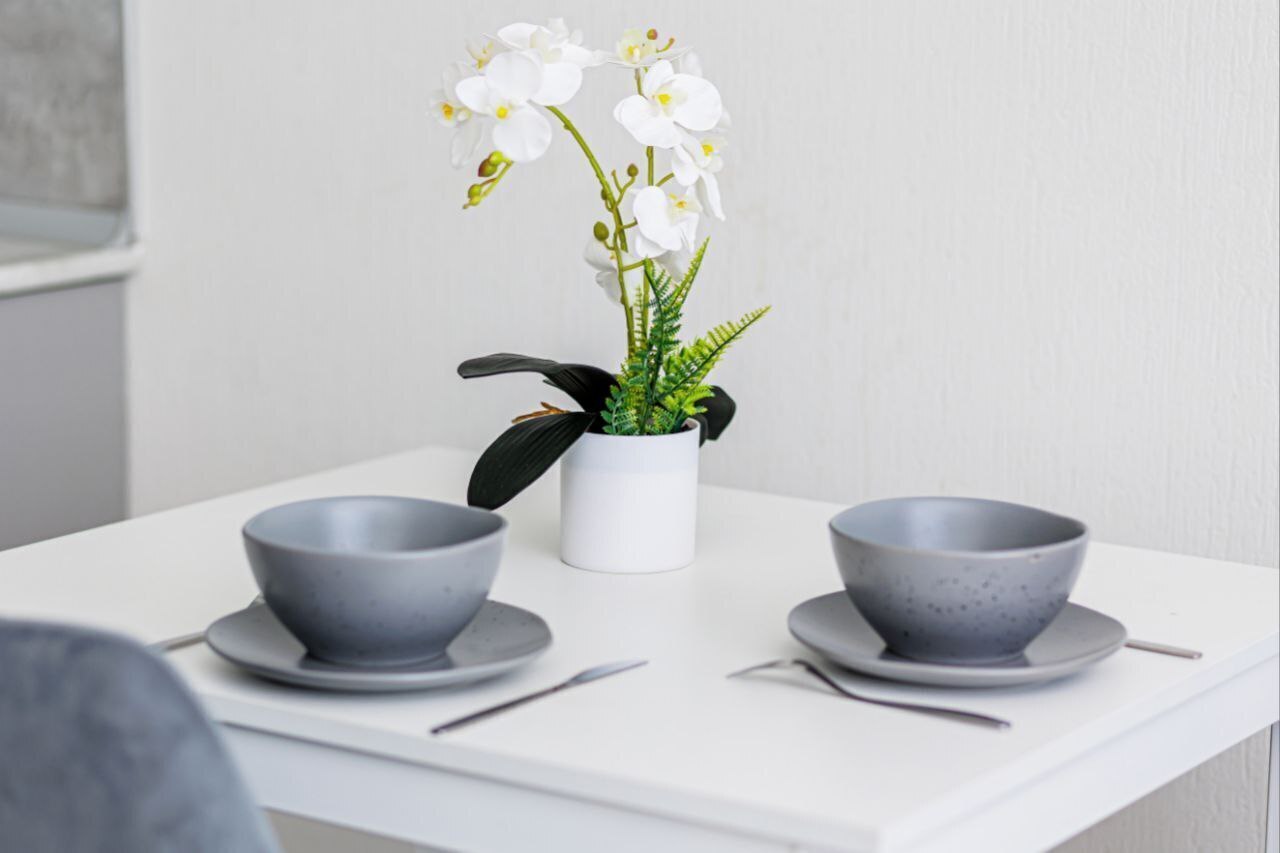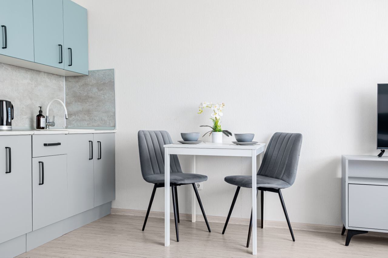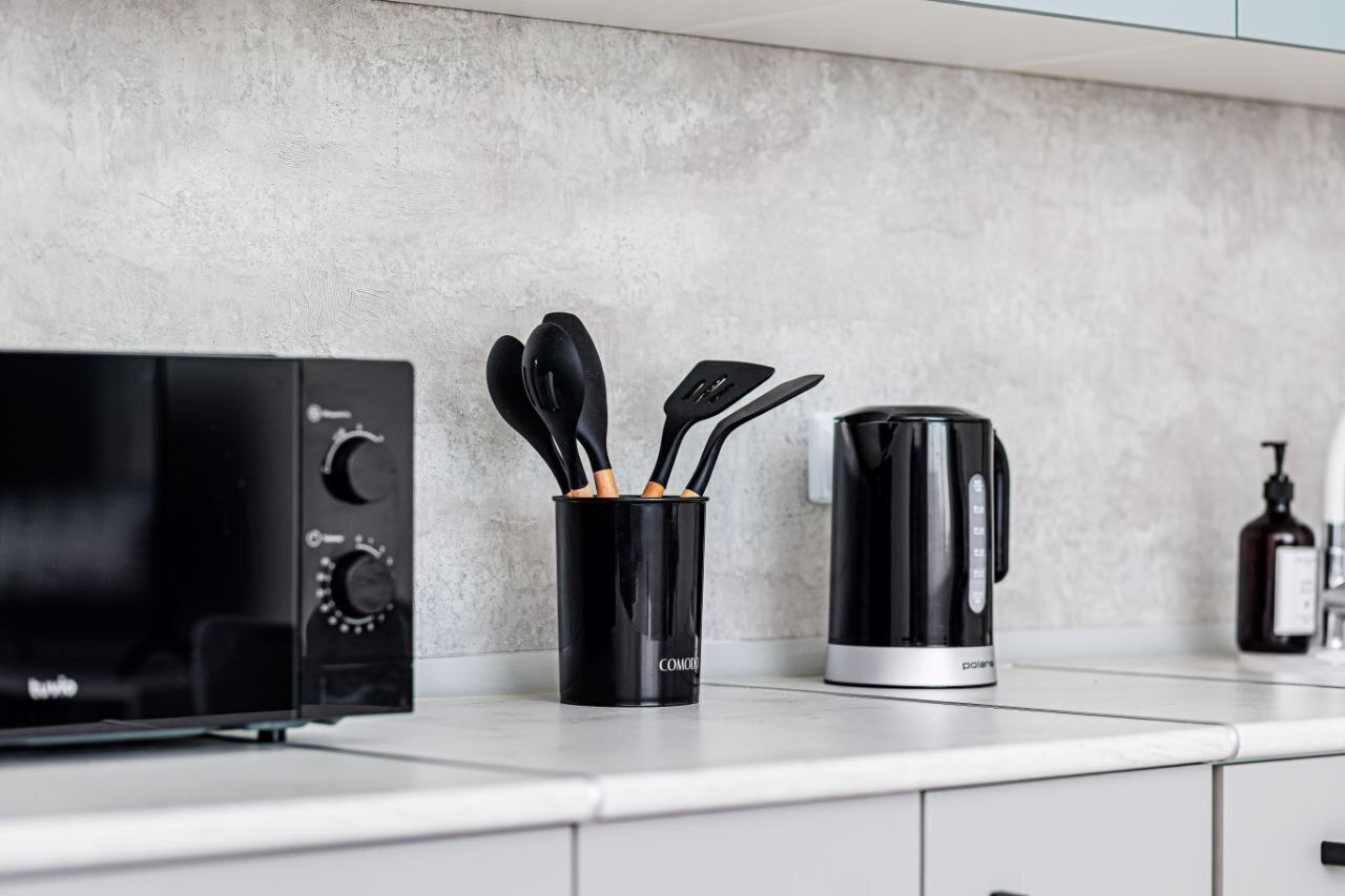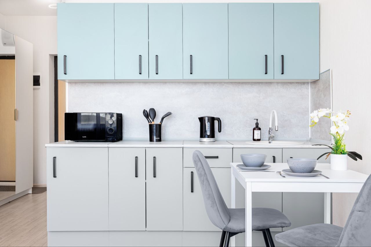 - Удобная обеденная и кухонная зона с набором посуды, плитой, микроволновой печью;