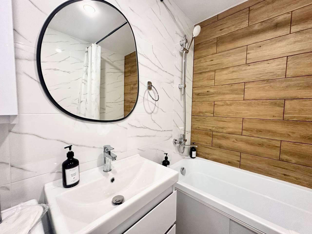 - Просторная ванная, фен, полотенца.