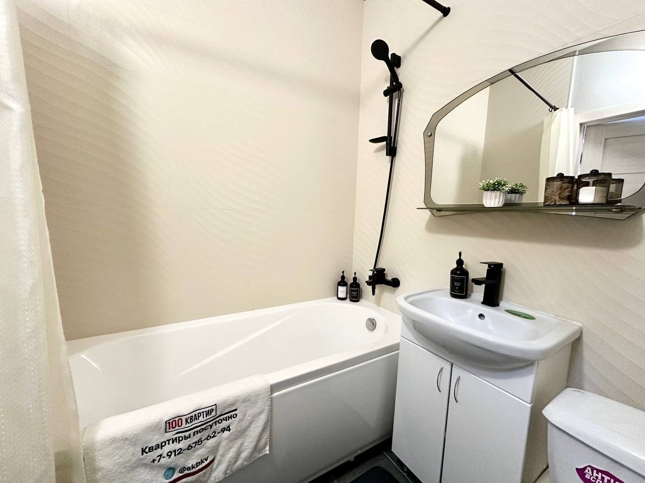 - Просторная ванная, фен, полотенца.