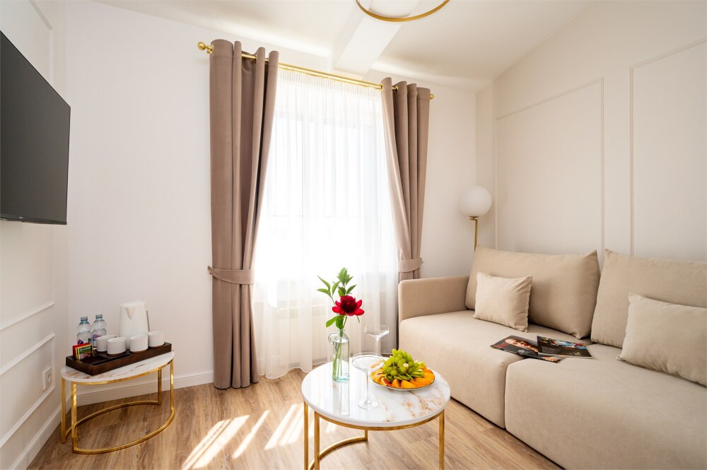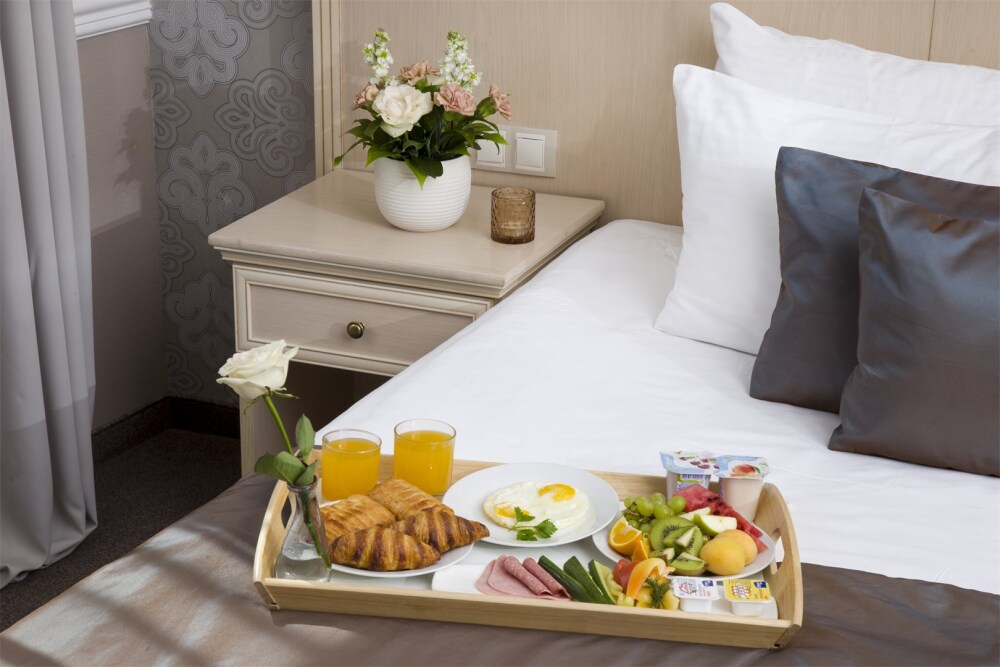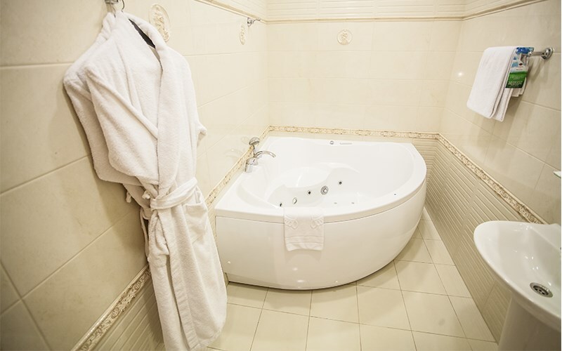 Современные номера полулюкс с видом на Санкт-Петербург и джакузи. В солнечный день номер наполняется светом и дарит гостям потрясающий вид на город и знаменитую реку Фонтанку. Ванная комната располагает гидромассажной ванной, мягкими халатами, тапочками, полотенцами, расширенной линейкой туалетных принадлежностей. Для удобства гостей в номере установлен сейф и мини холодильник. Дополните проживание одним из наших пакетов с украшением номера лепестками роз, свечами, фруктами и игристым вином для создания волшебной романтической атмосферы.
