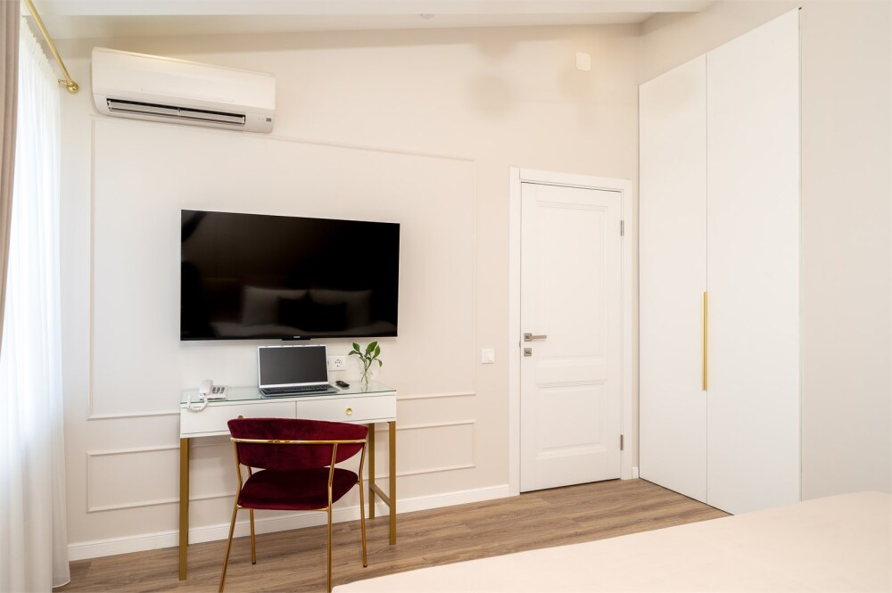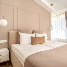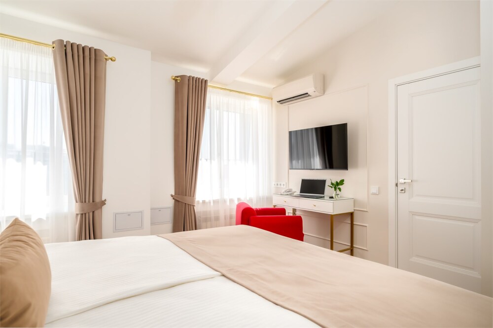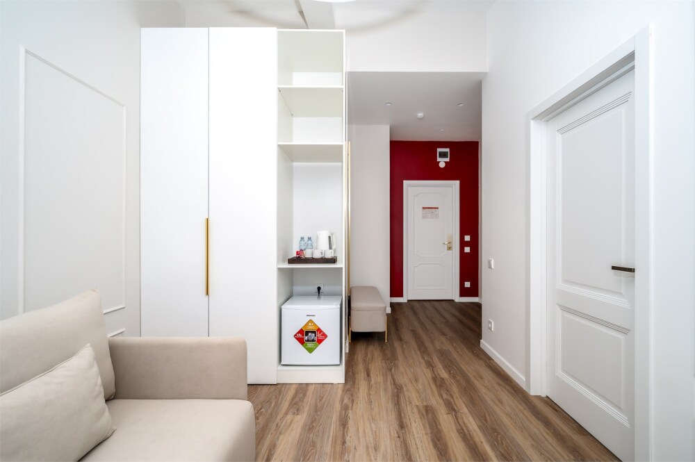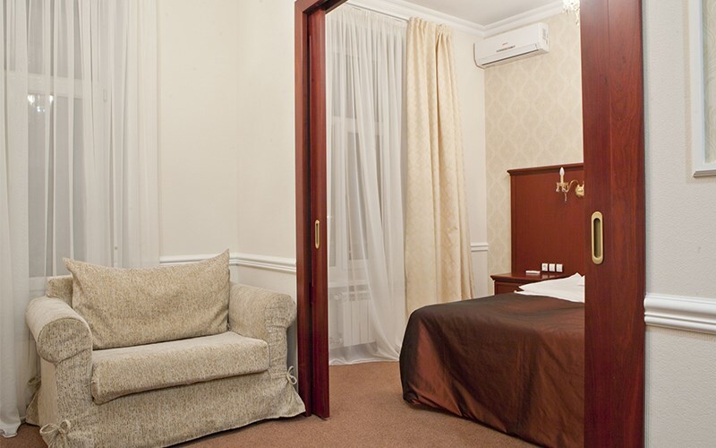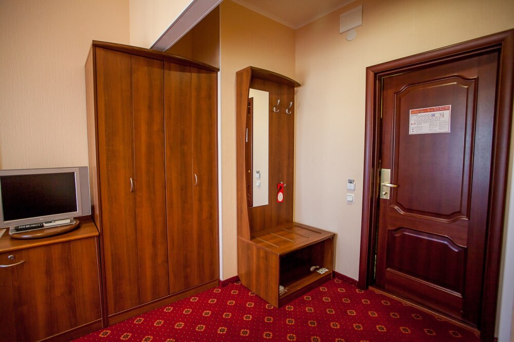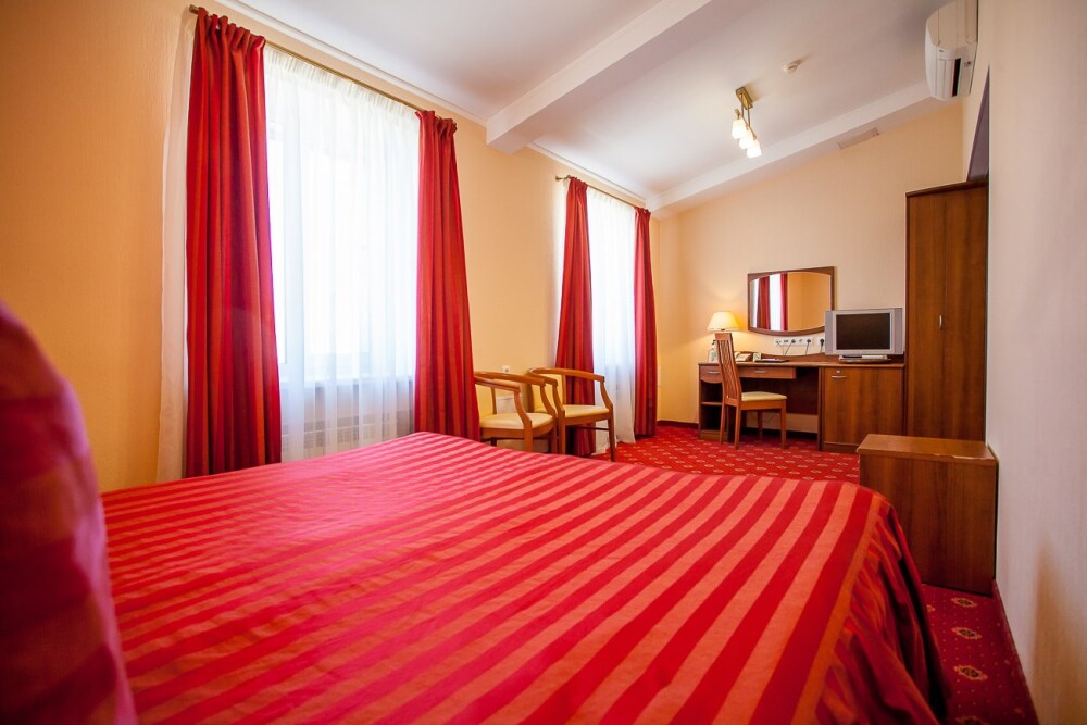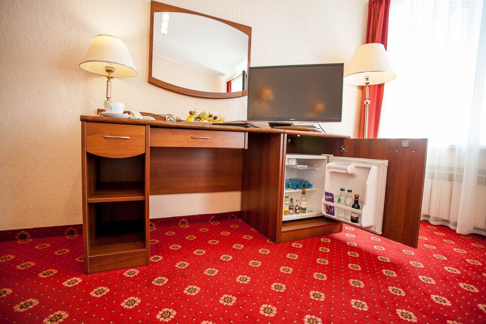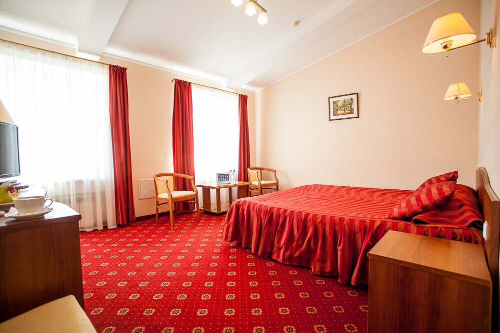 Улучшенный номер с дополнительными удобствами и увеличенной площадью для наших гостей. Опция одной большой кровати или двух раздельных на Ваш выбор (в момент бронирования). Номер оформлен в классическом стиле и подходит для проживания одного, двоих или троих гостей (при установке дополнительного места). Возможна бесплатная установка детской кроватки. Собственная ванная комната располагает душевой кабиной, мягкими халатами, полотенцами и тапочками, туалетными принадлежностями. Белоснежное постельное белье, мини бар (можно использовать как холодильник), питьевая вода по приезду.