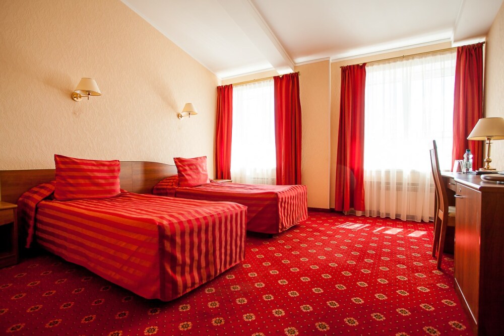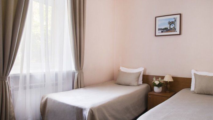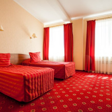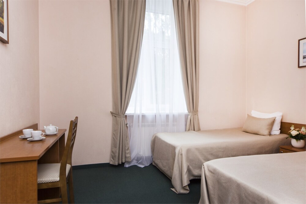 Уютный стандартный номер с двумя односпальными кроватями. Номер оформлен в классическом стиле и светлых тонах, располагает собственной ванной комнатой с душевой кабиной, мягкими полотенцами, туалетными принадлежностями и тапочками. В номере высокие потолки и ковровое покрытие для комфорта наших гостей и шумоизоляции. Возможна установка дополнительного места или детской кроватки для малыша.