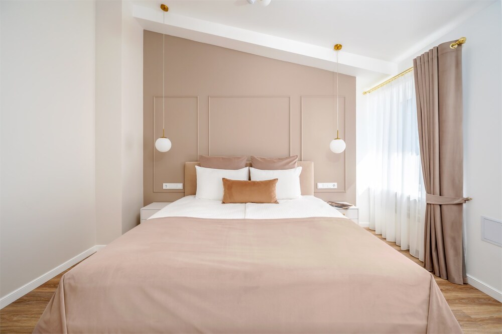 Уютный стандартный номер с одной двуспальной кроватью. Номер оформлен в классическом стиле и светлых тонах, располагает собственной ванной комнатой с душевой кабиной, мягкими полотенцами, туалетными принадлежностями и тапочками. В номере высокие потолки и ковровое покрытие для комфорта наших гостей и шумоизоляции. Возможна установка дополнительного места или детской кроватки для малыша.