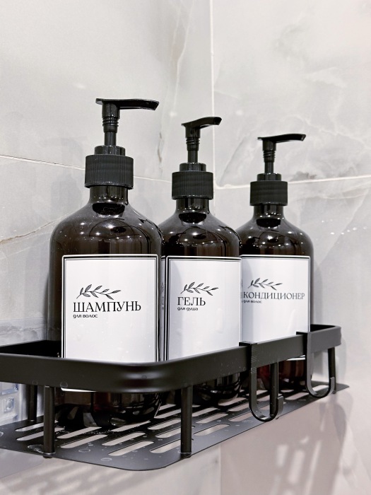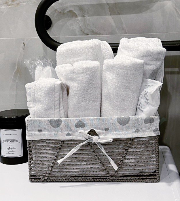 * Полный набор гигиеничных средств: шампунь, гель для душа, бальзам для волос, скраб, тоник для лица, гель для интимной гигиены, масло для массажа, крема и многое другое.