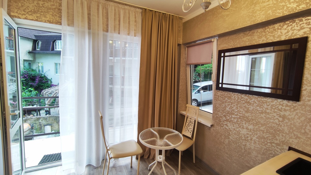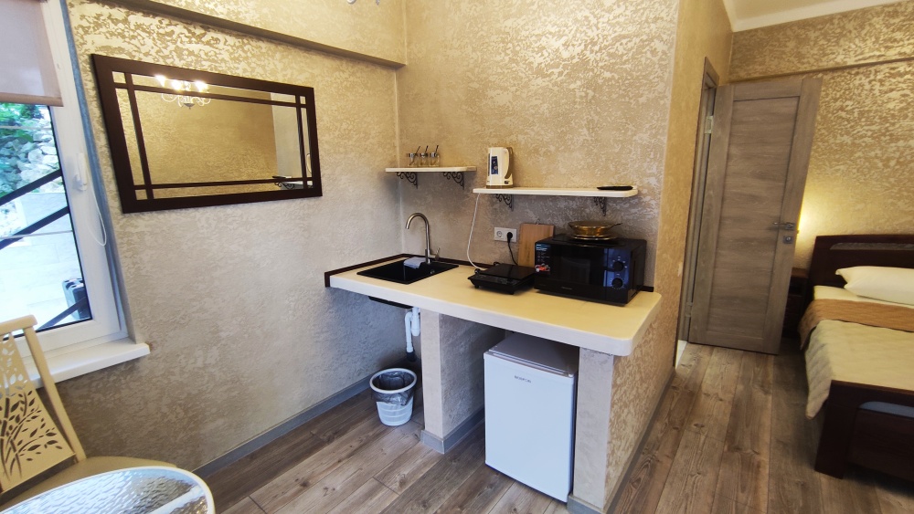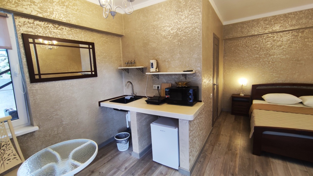 В шаговой доступности столовые и хорошие ресторанчики с национальной и европейской кухней «Кавказская кухня», «Рица», «Золотая рыбка», «Три бочки». Пешком можно прогуляться до Приморского парка, основанного Принцем Ольденбургским и красивейшей Гагрской Колоннады.