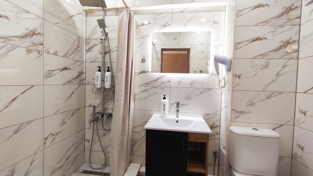 Семейный номер, санузел общий, сразу за дверью, на 2 номера.