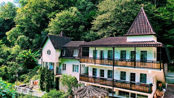 Гостевой дом «Шале Агава» расположен в Гагре. Он находится в глубине ущелья, в тени деревьев, по соседству с пещерой Святого Ипатия и горным ручьём, утопая в цветах и зарослях маракуйи. Тут удивительно тихо и спокойно, даже когда вся Гагра гудит от ночных гуляний. Поют птицы, трещат цикады, журчит ручей. При этом до пляжа идти 10-15 минут, половина дороги в тени деревьев даже в полдень.