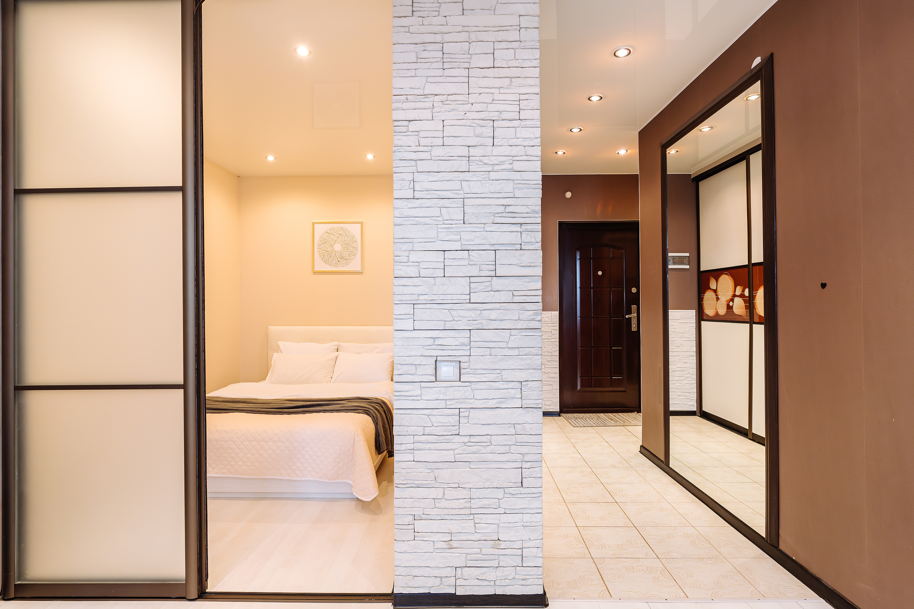 - 2 комфортных спальных места, которые позволят разместить до 3-х гостей (большая мягкая кровать и удобный диван).