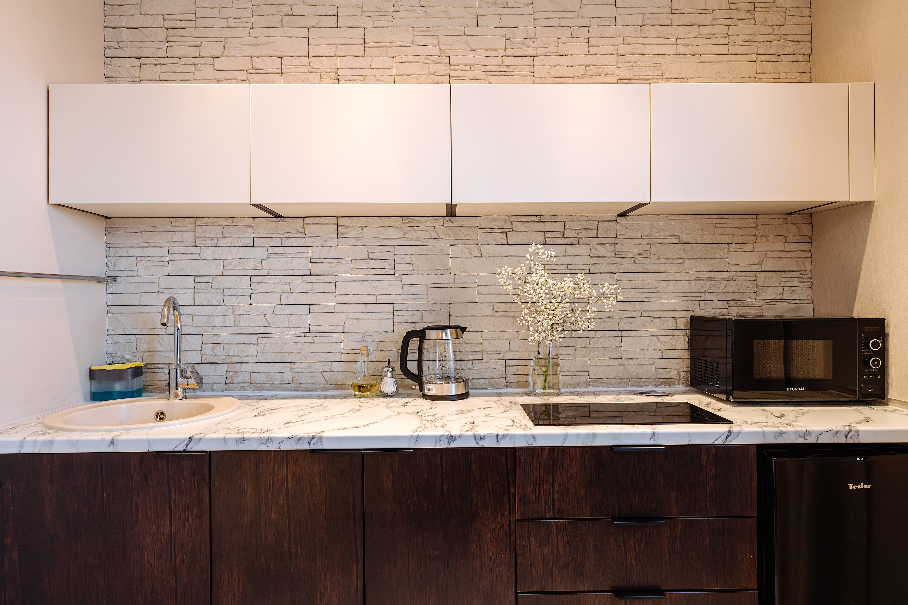 - Кухонная зона: необходимая бытовая техника, чистая посуда, чай, кофе, растительное масло.