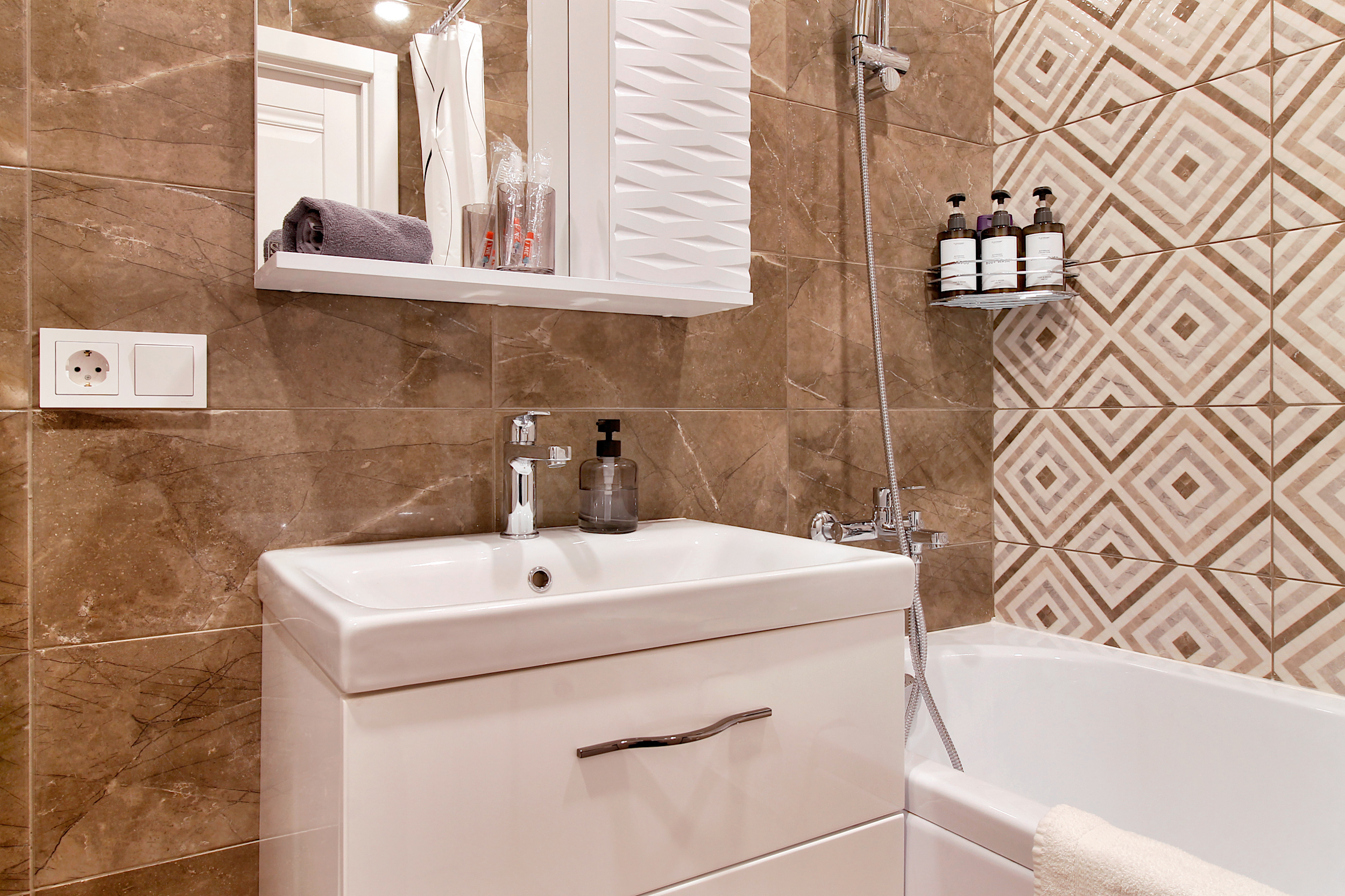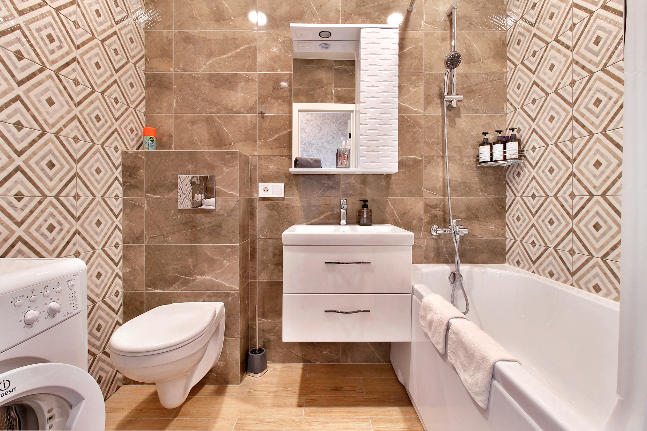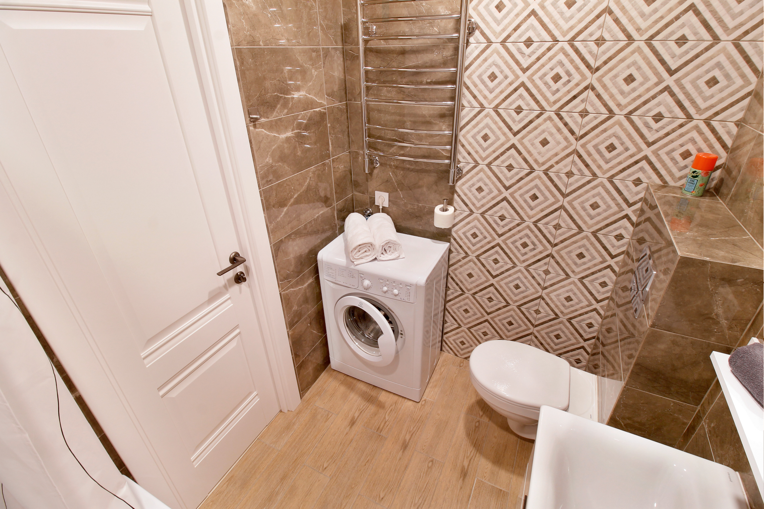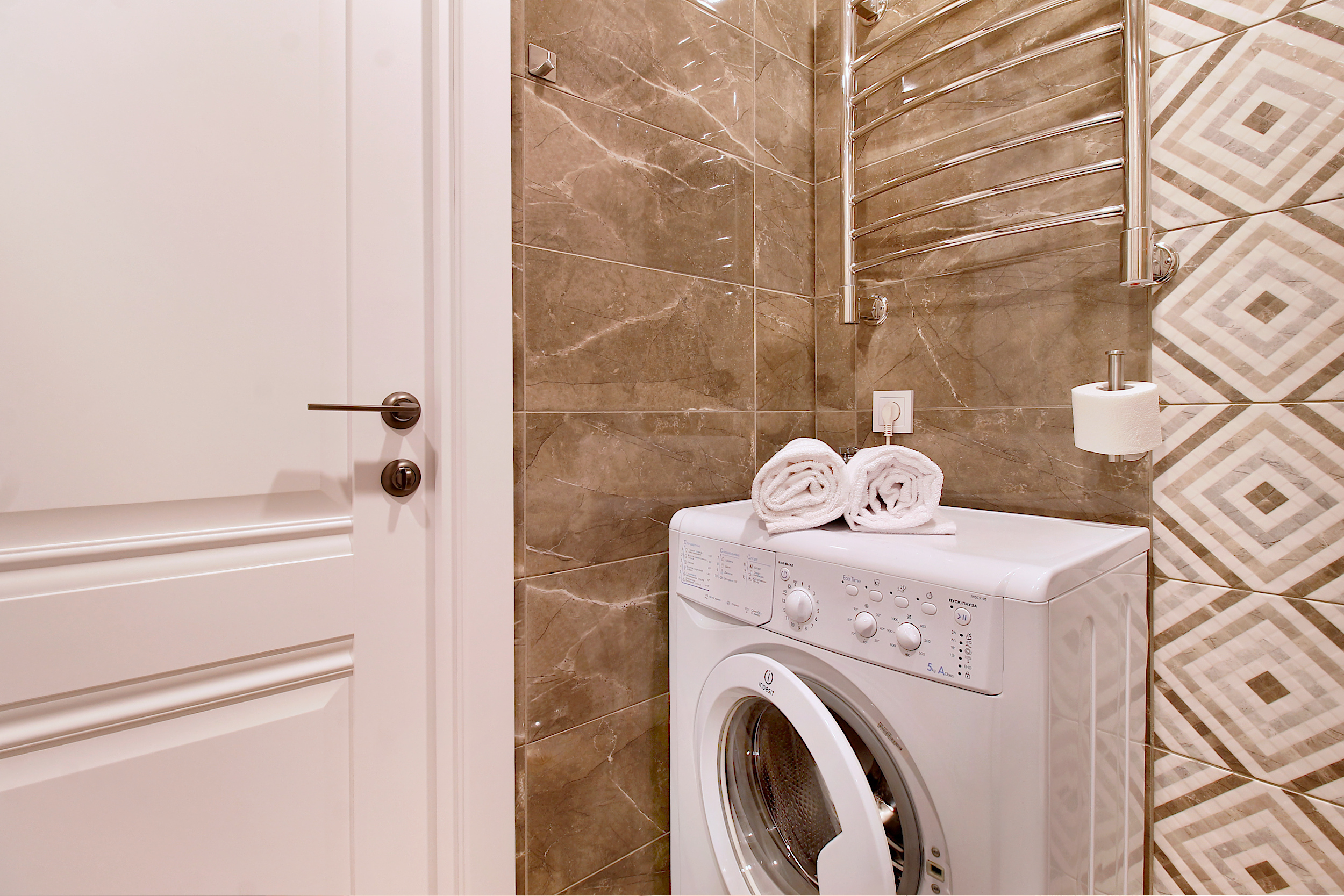 - Ванная: фен, стиральная машина, гель для стирки вещей, шампунь, гель для душа, жидкое мыло; утюг, гладильная доска, сушилка для Вашего белья после стирки.