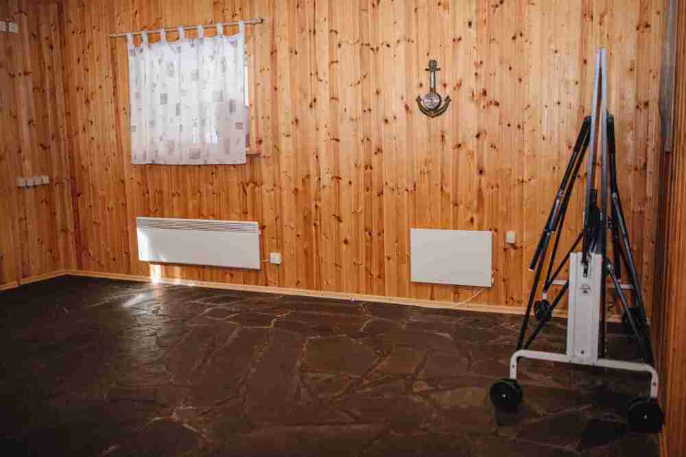 Коттедж «Солнечный» предлагает комфортный отдых с сауной, спортзалом и уютной гостиной с камином. На кухне есть всё необходимое для приготовления еды. Территория включает Wi-Fi, парковку и площадку для барбекю.