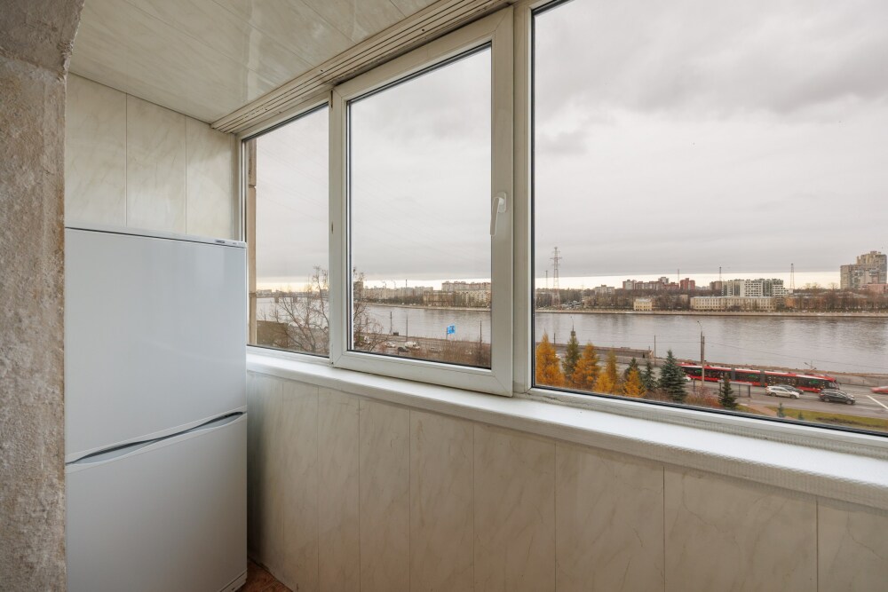 Панорамный вид на Неву и причал. Уникальный шанс каждый день любоваться речной гладью и красивыми видами с удобного эркерного подоконника. Вечерами Вы сможете наблюдать, как огни города и судов отражаются в темной воде.