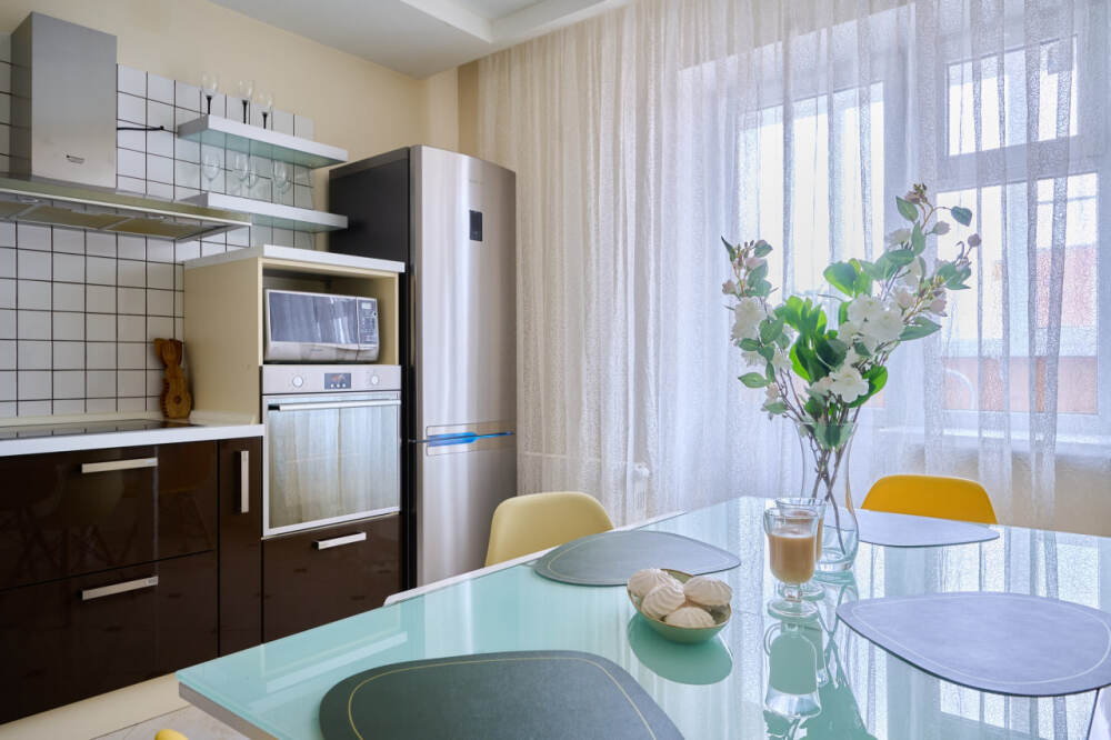 - Вся необходимая техника: стиральная машина, кондиционер, микроволновая печь, фен.