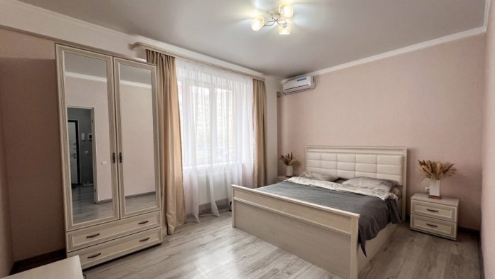 В квартире есть все, что нужно для комфортного проживания: двуспальная кровать, постельное белье и полотенца, посуда, микроволновка, телевизор, Wi-Fi, холодильник.