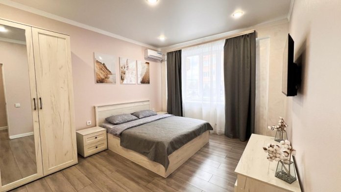 В квартире есть все, что нужно для комфортного проживания: двуспальная кровать, раскладной диван, постельное белье и полотенца, посуда, микроволновка, телевизор, Wi-Fi, холодильник.
