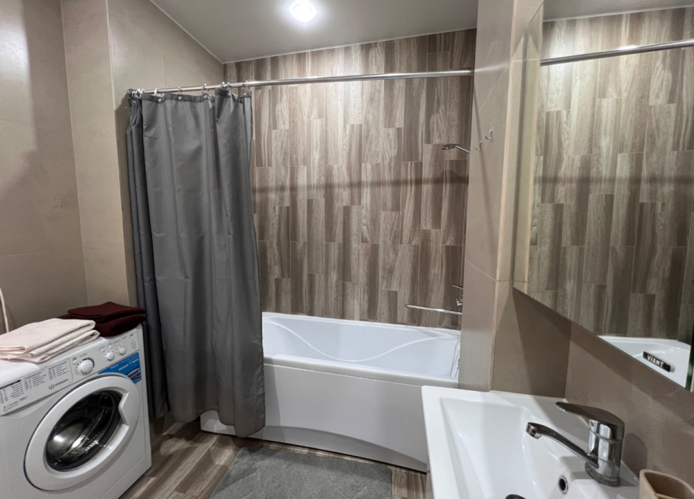 В квартире есть все, что нужно для комфортного проживания: двуспальная кровать, постельное белье и полотенца, посуда, микроволновка, телевизор, Wi-Fi, холодильник.