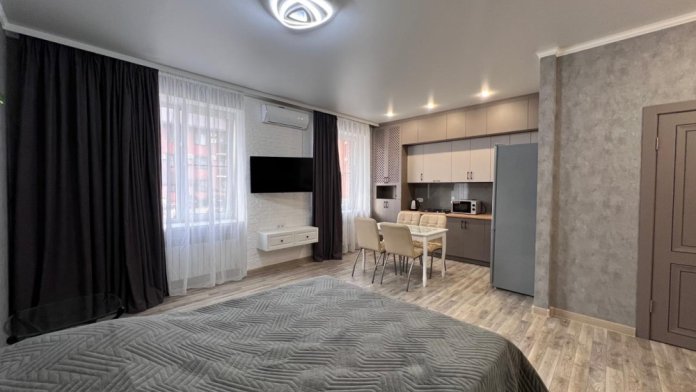 В квартире есть все, что нужно для комфортного проживания: двуспальная кровать, постельное белье и полотенца, посуда, микроволновка, телевизор, Wi-Fi, холодильник.