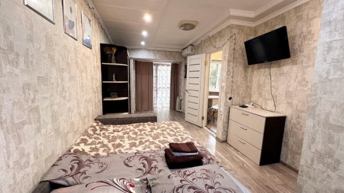 В квартире есть все, что нужно для комфортного проживания: двуспальная кровать, постельное белье и полотенца, посуда, микроволновка, телевизор, Wi-Fi, холодильник.