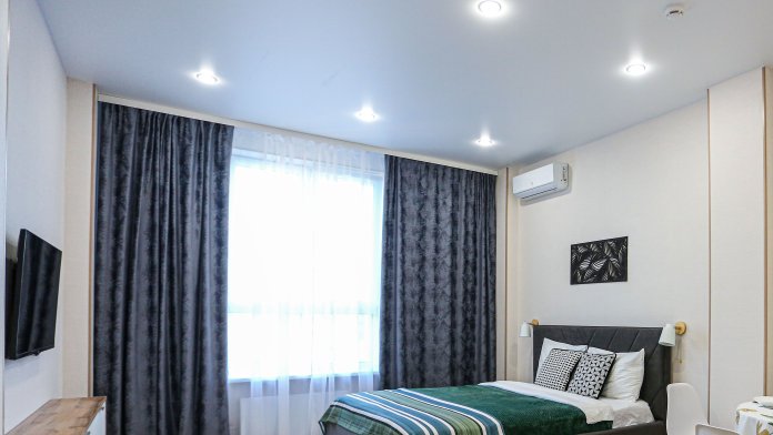 Комфортная двухспальная кровать с ортопедическим матрасом, шторы блек аут помогут вам выспаться, как в детстве. Раскладное кресло - кровать для размещения стройного взрослого или ребенка.