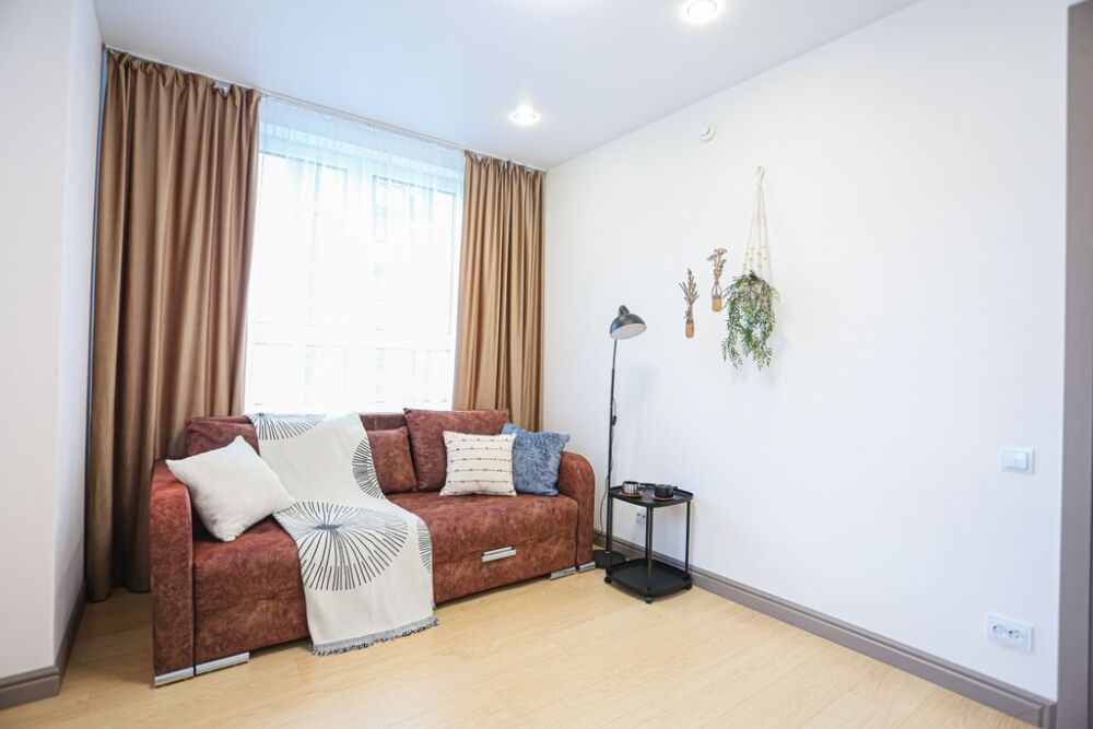 Зал с раскладным широким диваном и спальня с 2-спальной кроватью с ортопедическим матрасом и 1.5 спальной кроватью.