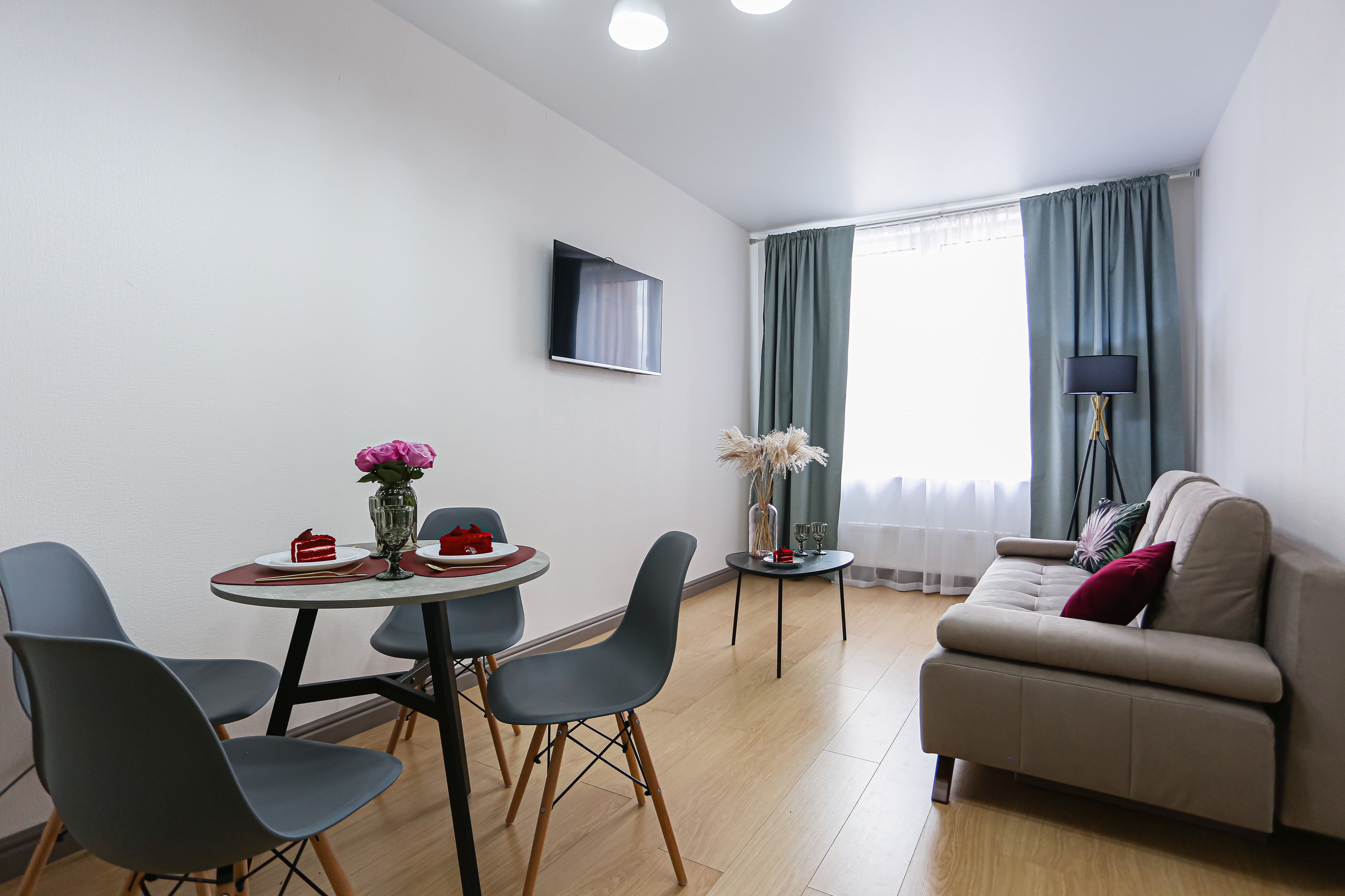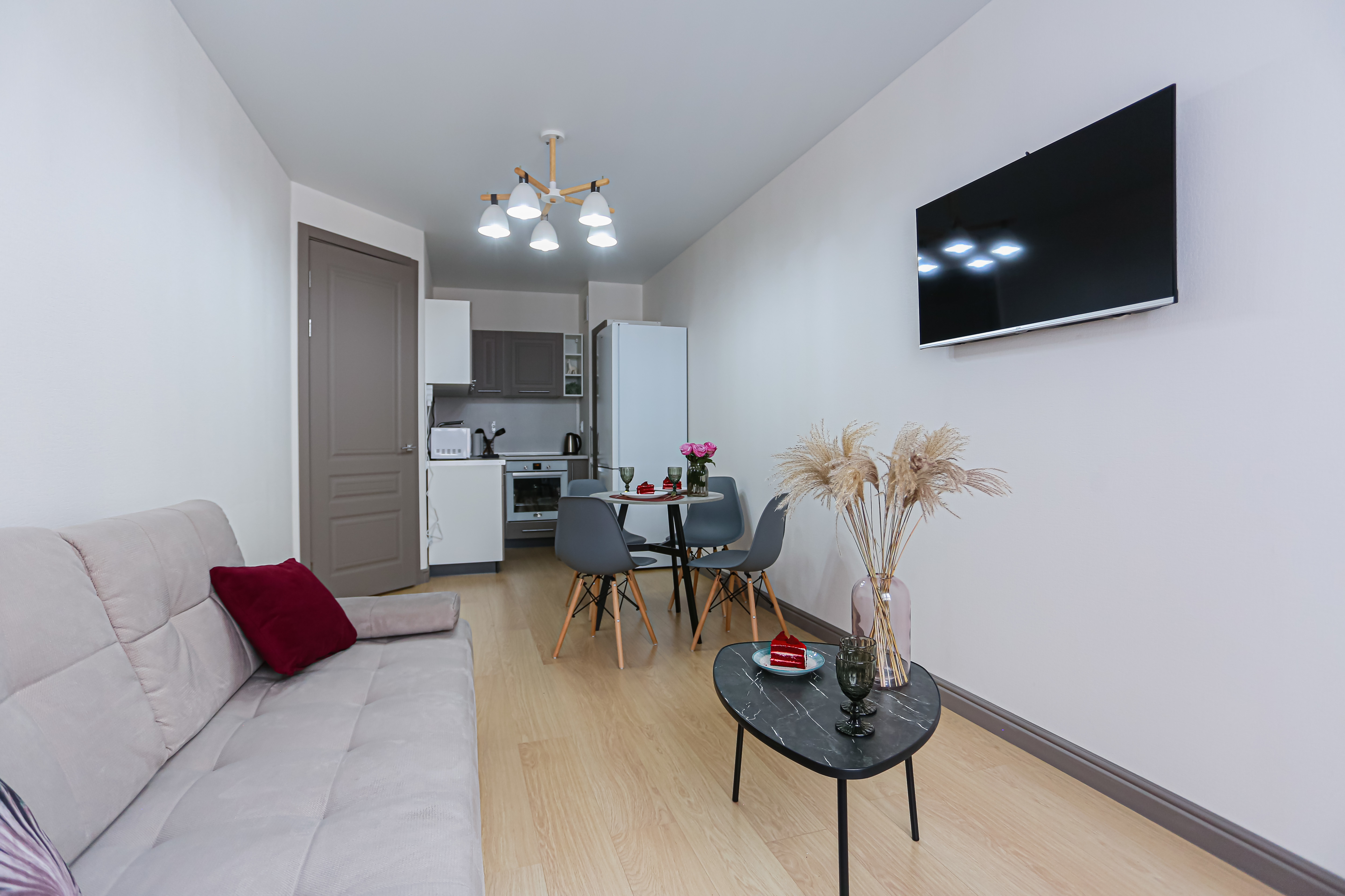 Идеальная чистота в квартире, красивое и свежее постельное бельё и полотенца, красивая посуда.
