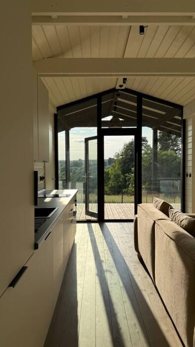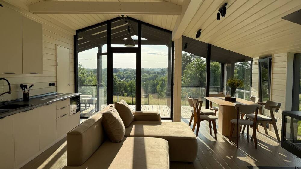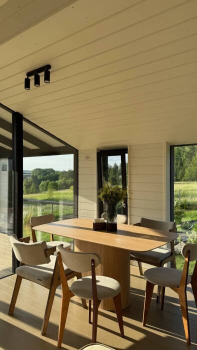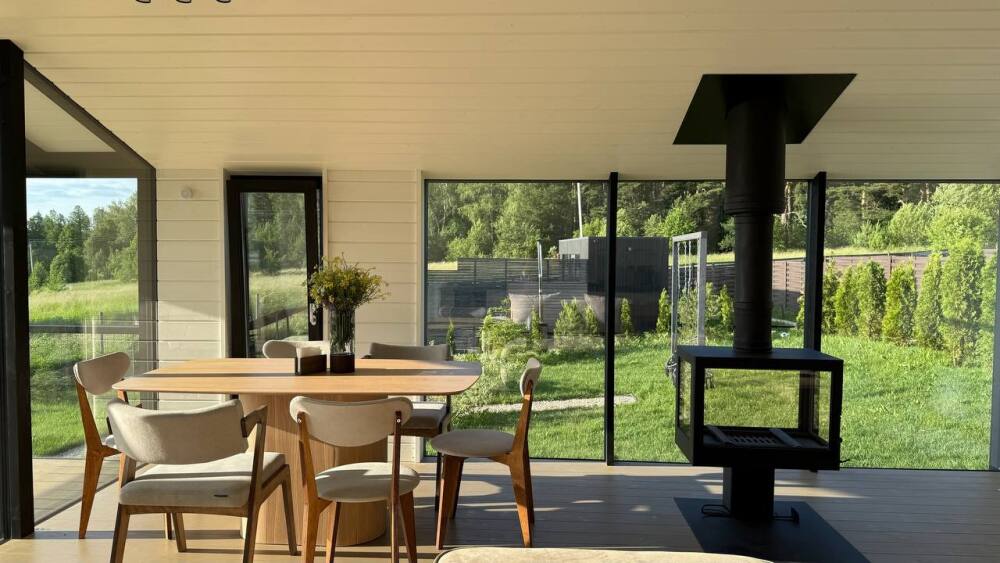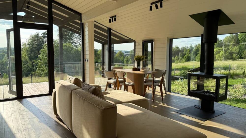 В этом доме легко замедлиться, вдохновиться осенью и провести время без спешки. Пространство наполнено светом и теплом благодаря большим окнам, натуральным материалам и продуманным деталям.
