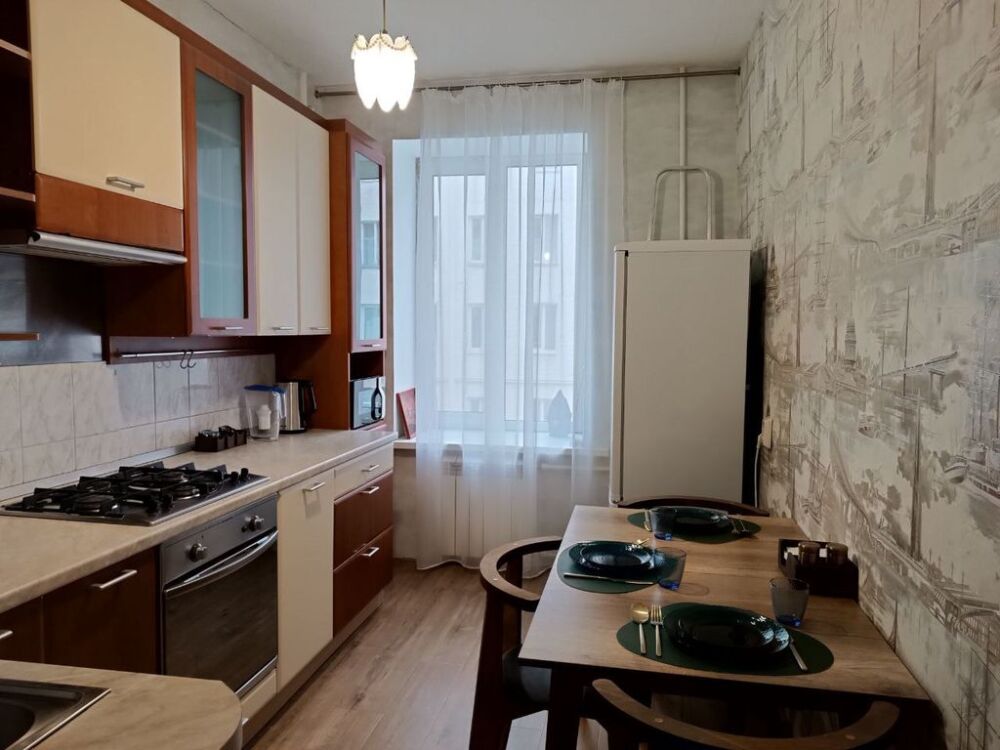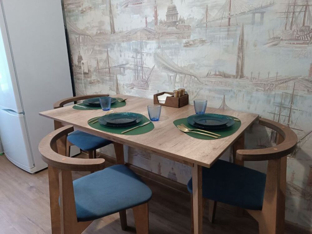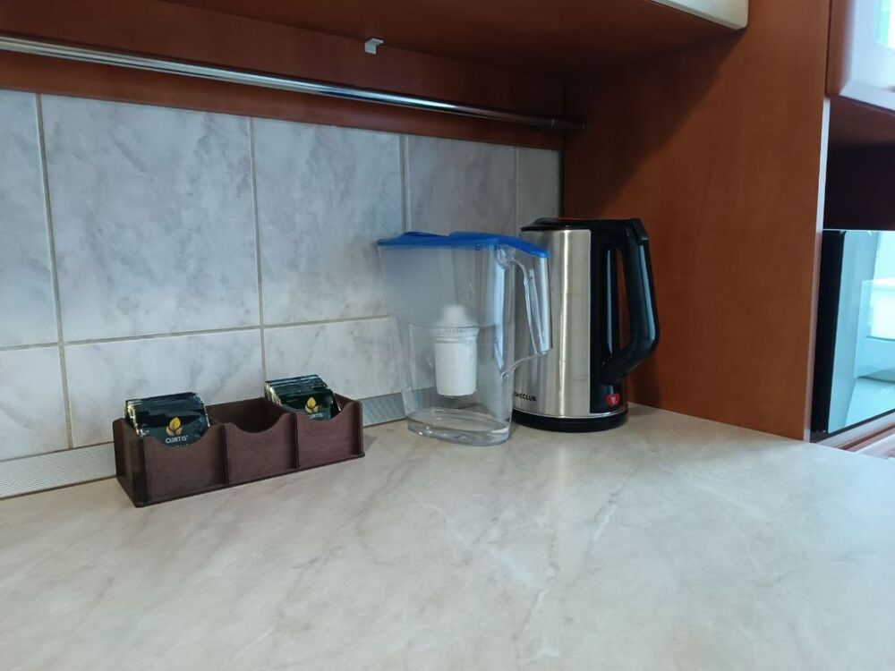 На кухне есть все для приготовления, разогрева и приема пищи. Газовая плита, духовка, микроволновка, чайник электрический, фильтр-кувшин для воды. Красивая посуда.