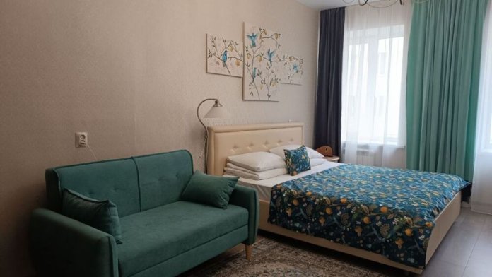 Одна комната 15 кв. метров с двуспальной кроватью и вместительным шкафом.
