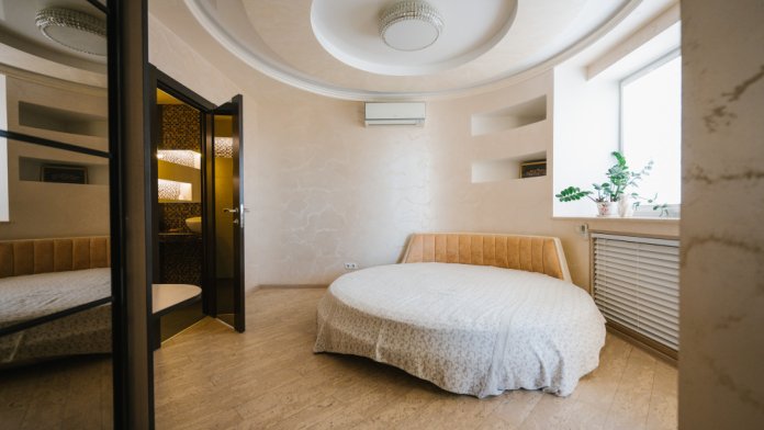 - спальные места для 13 человек: круглая кровать диаметр 2,2 м; 2 двуспальные кровати; 1 односпальная кровать, 3 кожаных дивана);