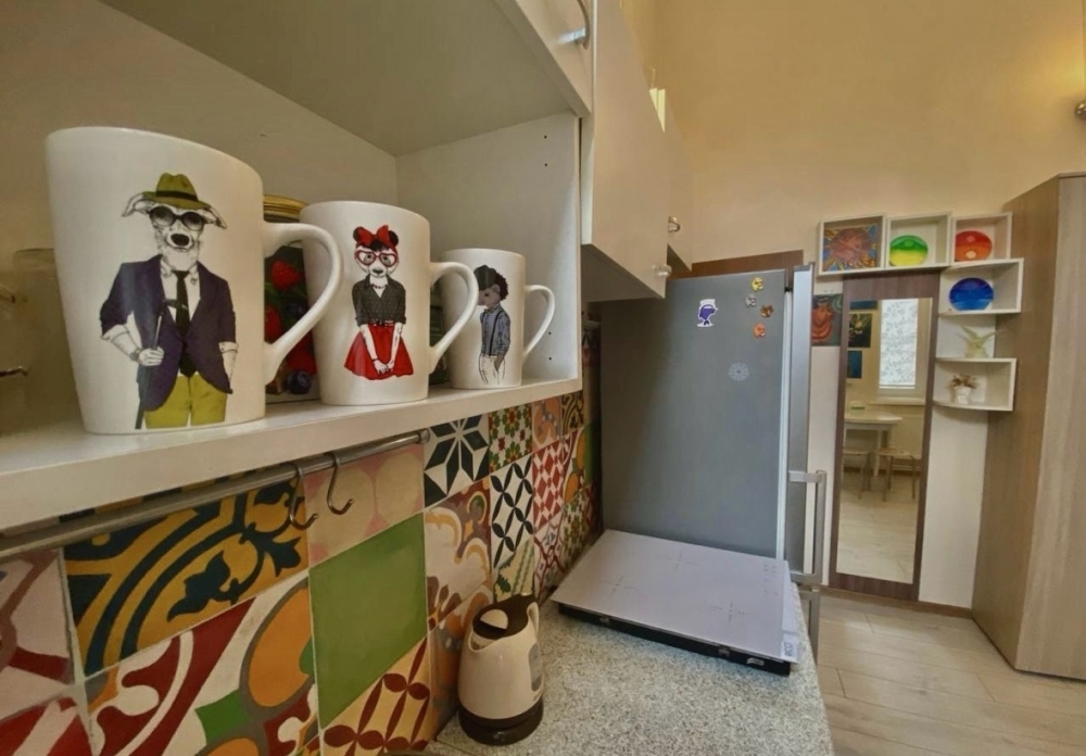 - кухня с необходимым набором кастрюль, посуды и столовых приборов (холодильник, микрoвoлновaя пeчь, электроплитa, чайник).