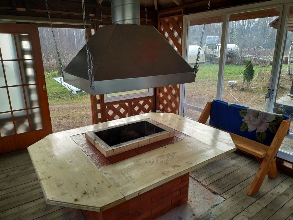 Жаркая баня на дровах (в стоимость размещения не входит) и застекленная беседка с мангальной (костровой) зоной (в стоимость не входят дрова и уголь).