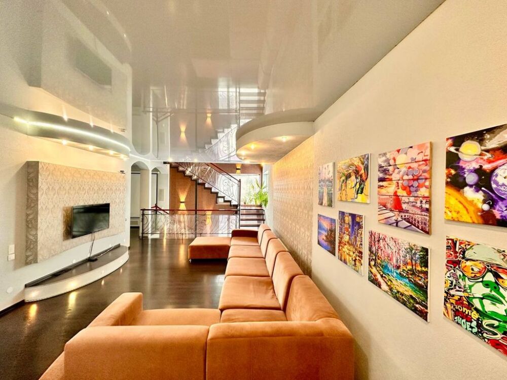 На каждом этаже есть роботы пылесосы. Телевизор, все каналы, ivi, рrrmiеr, Кинопоиск оплачены. Так же кинотеатр с проектором и коллекцией фильмов и музыки.