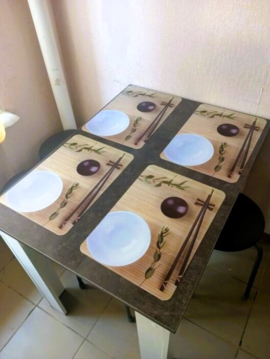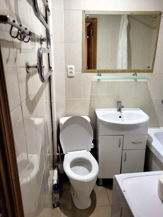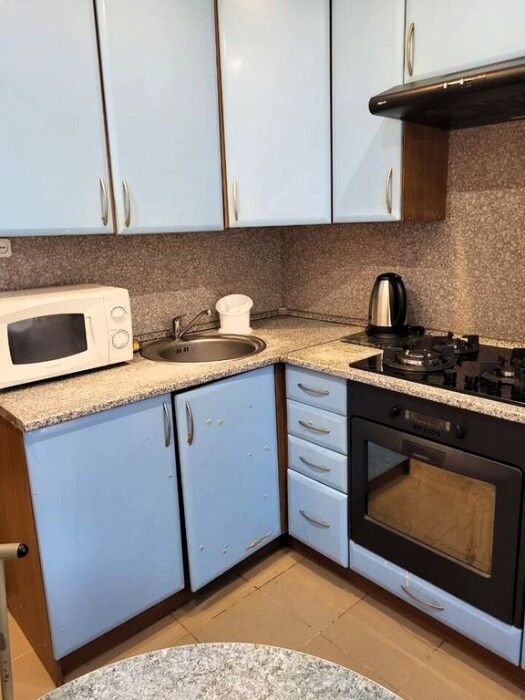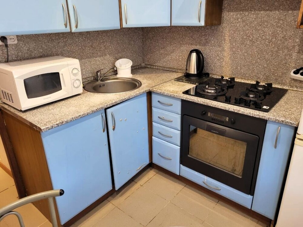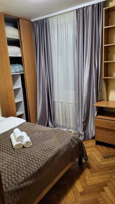 Апартаменты эконом. Несмотря на это, есть всё необходимое для проживания: кухня, санузел, удобные спальные места рассчитаны на 4 человека. Идеально для семейных пар, пары с детьми, индивидуальных путешественников. Фен, утюг, СВЧ, стиральная машина, возле дома есть парковка. В случае длительного проживания — замена белья и полотенец 1 раз в 5 дней.