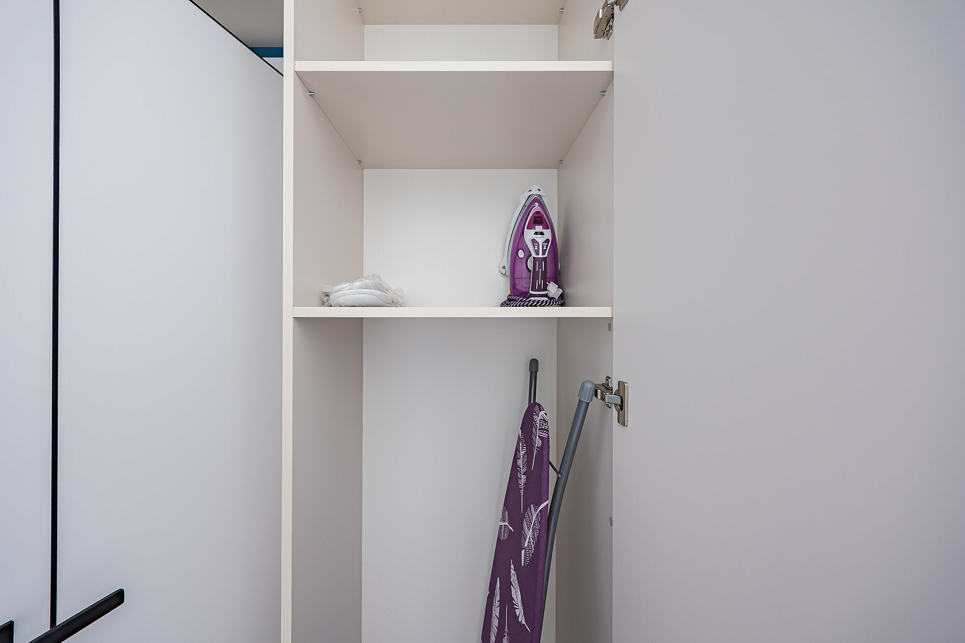 - Кухня с бытовой техникой и посудой, утюг, фен.