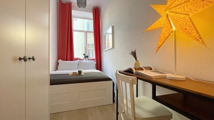Комната находится на берегу реки Фонтанки в бывшем доходном доме Г. И. Любиенса. В пешей доступности весь центр Петербурга. Если посмотреть в сторону Вознесенского проспекта, можно увидеть Исаакиевский собор - отличное начало маршрута.