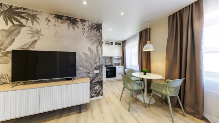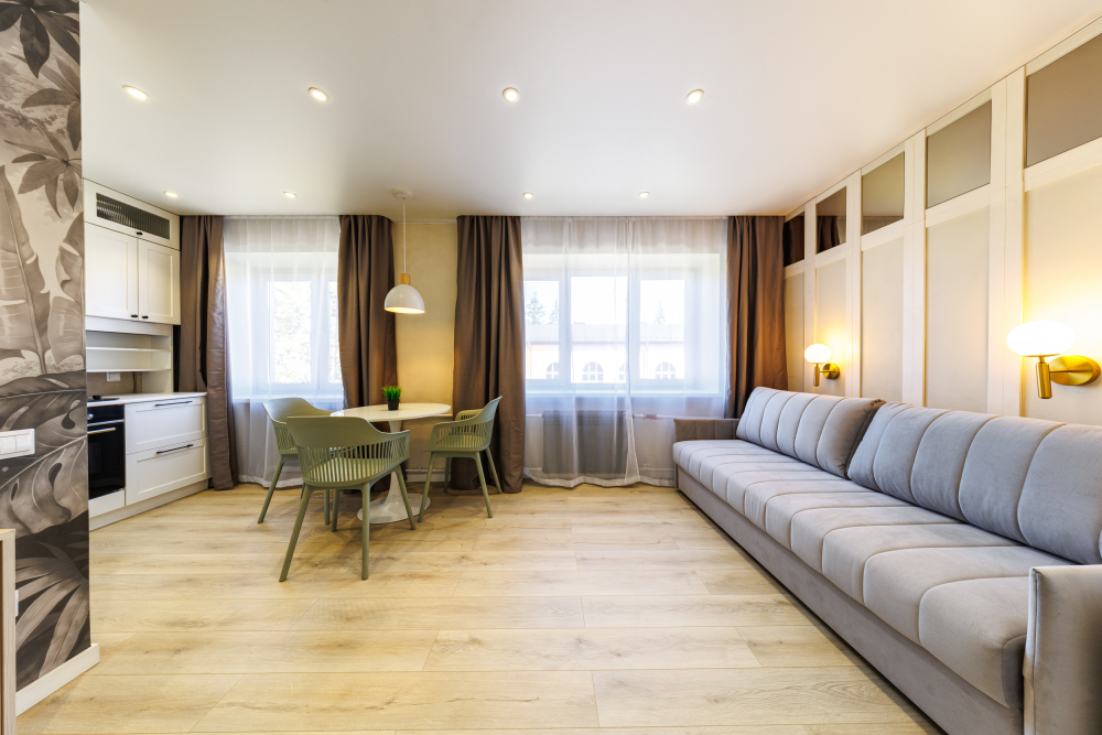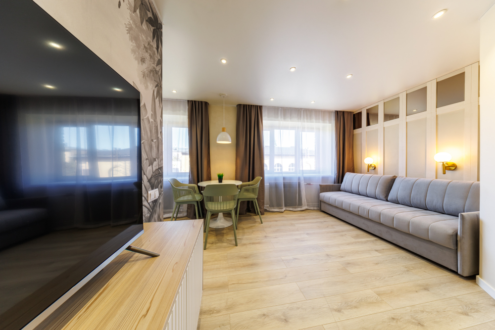 На всех наших объектах есть всё самое необходимое: фен, утюг, стиральная машина, чайник, микроволновка, плита, холодильник, столовые приборы и базовая посуда, чай и кофе.