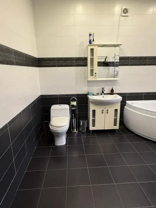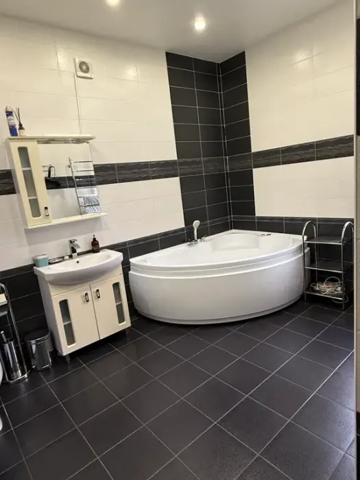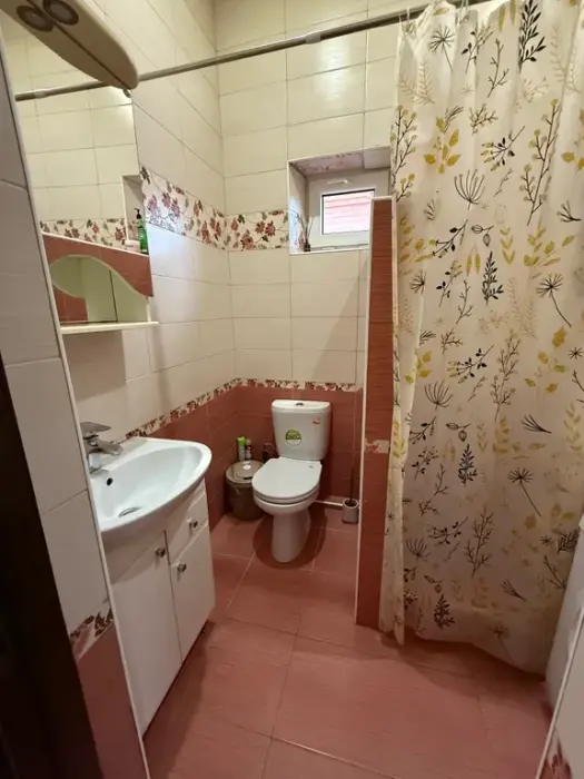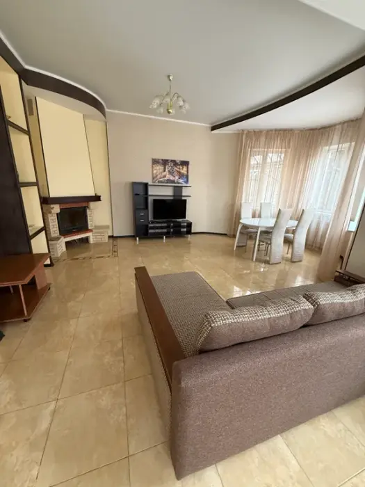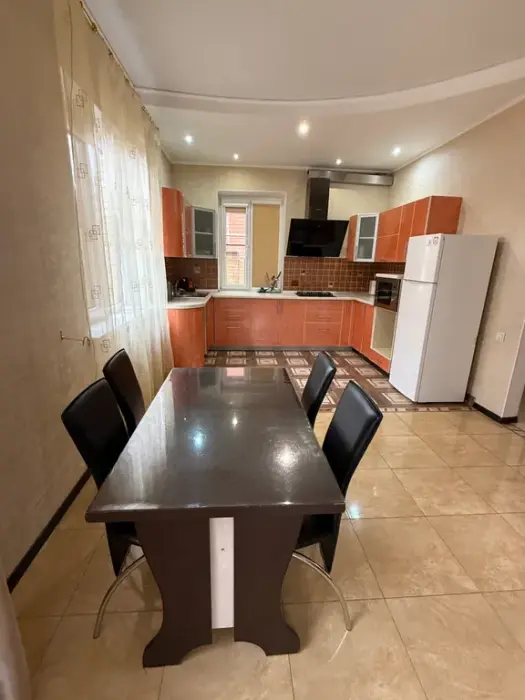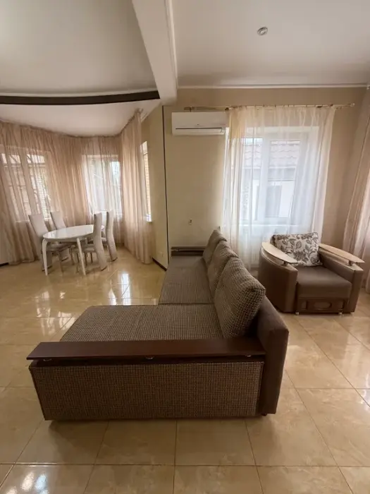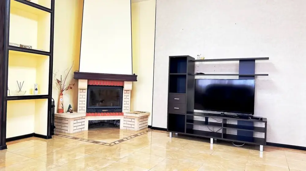 1 этаж - просторная гостиная, с раскладывающимся и обычным столом, большим угловым диваном и креслом, кухня со всеми необходимыми принадлежностями и кухонной посудой, телевизор смарт ТV душевая комната совмещена с санузлом.