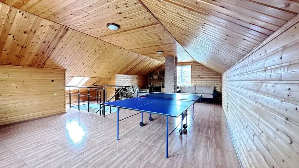 3 этаж - мансарда где расположен теннисный стол, диваны, а так же сушилка для белья, гладильная доска и утюг.