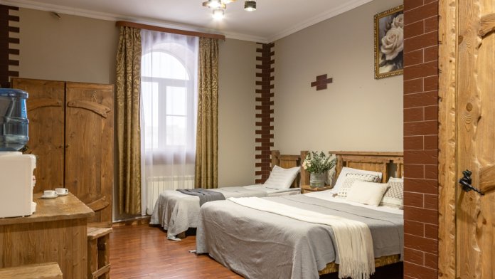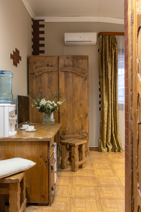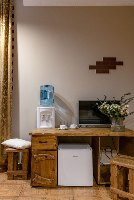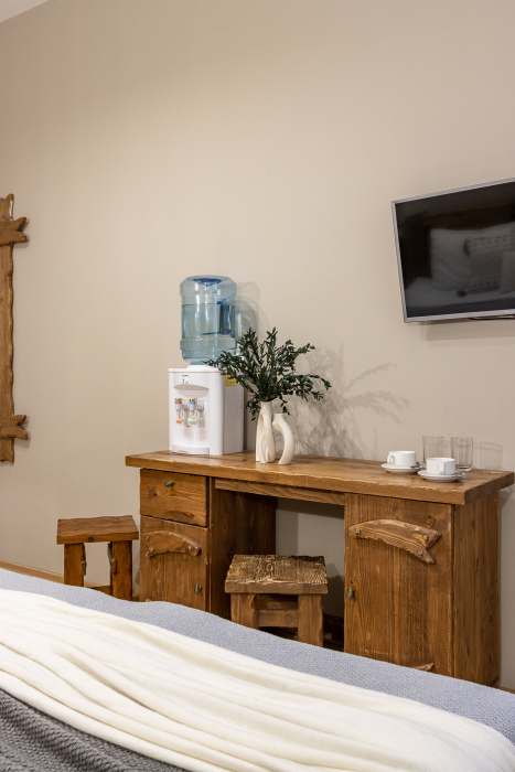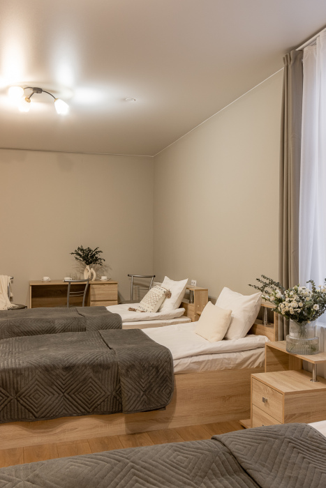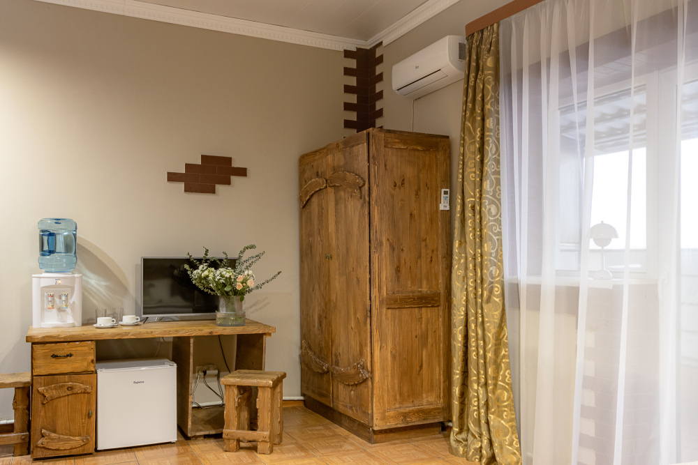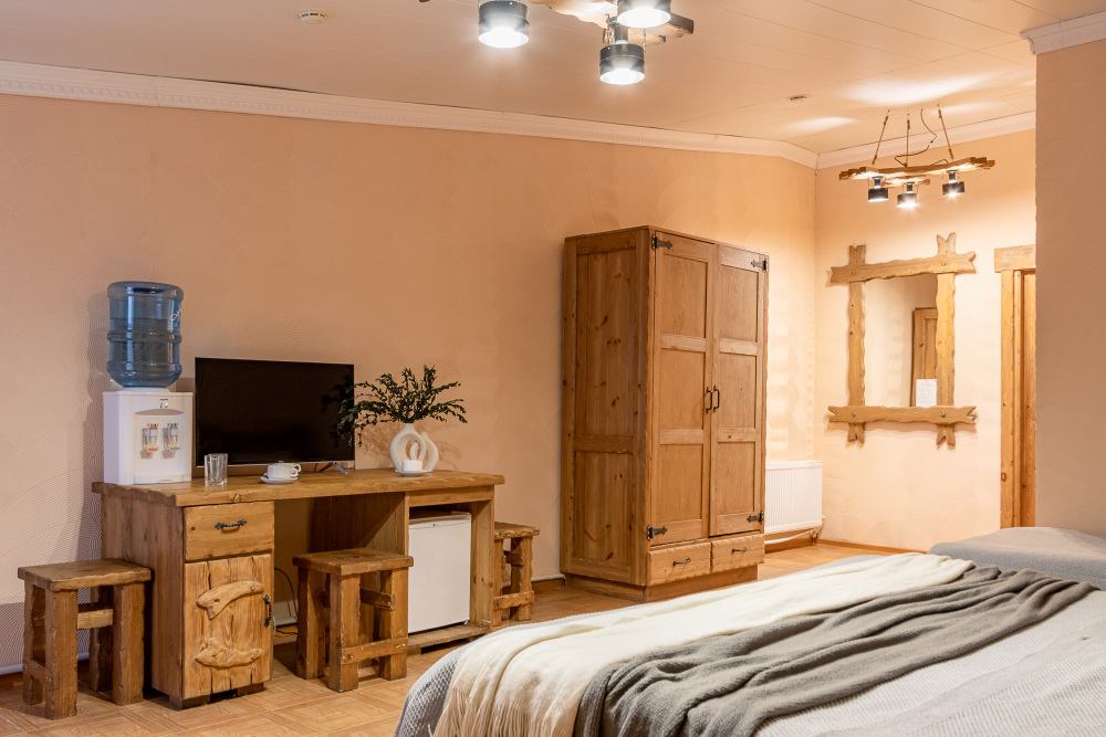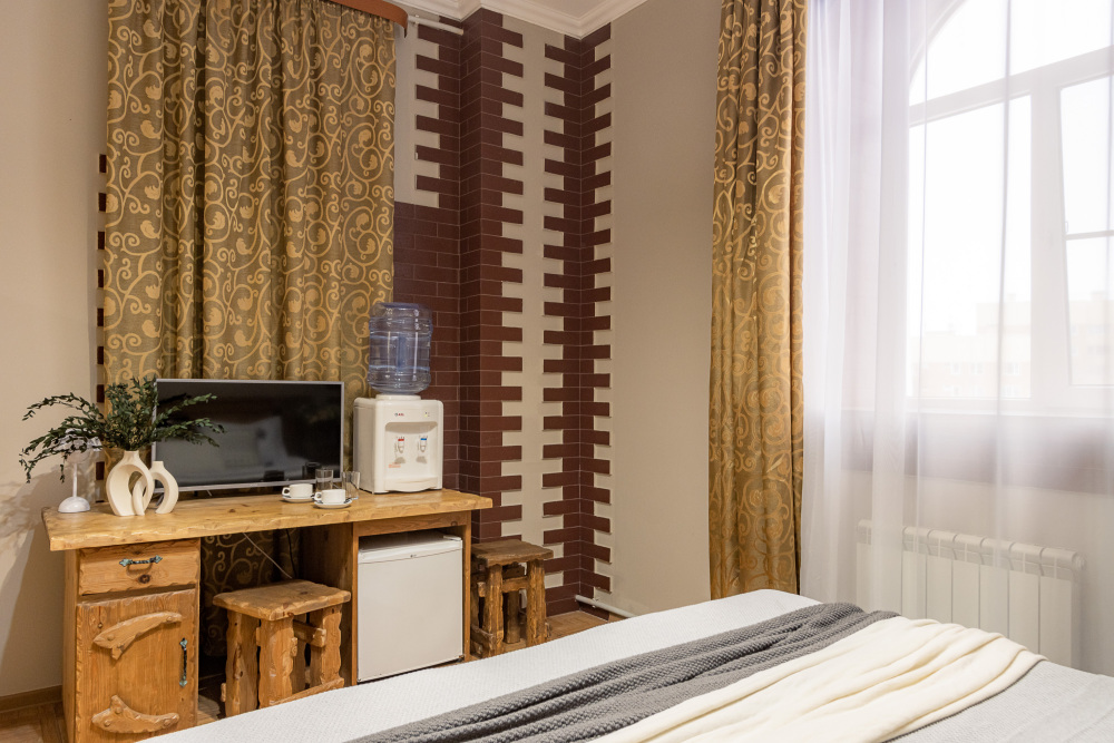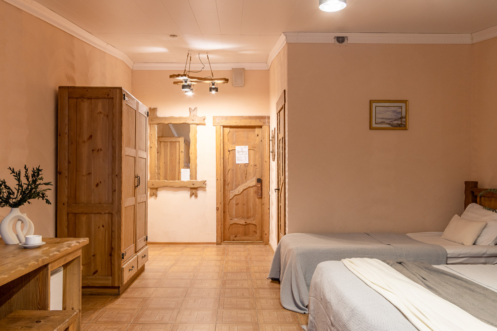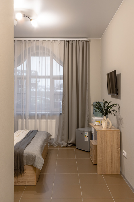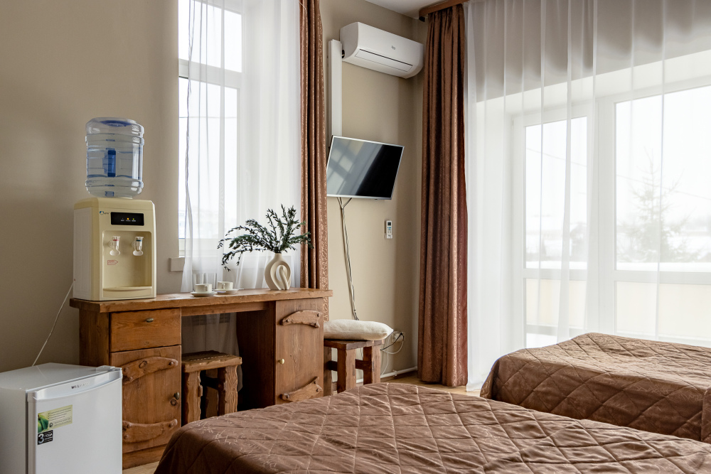 Номерной фонд состоит из 31 номера категорий: Стандарт, Семейный и Улучшенный. Все они оснащены: телевизором, мини-холодильником, кулером с питьевой водой, кондиционером, шкафом, сейфом и гигиеническим набором.