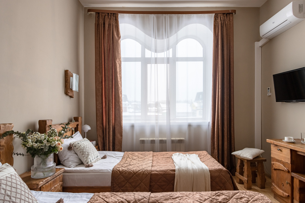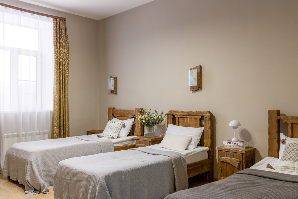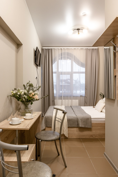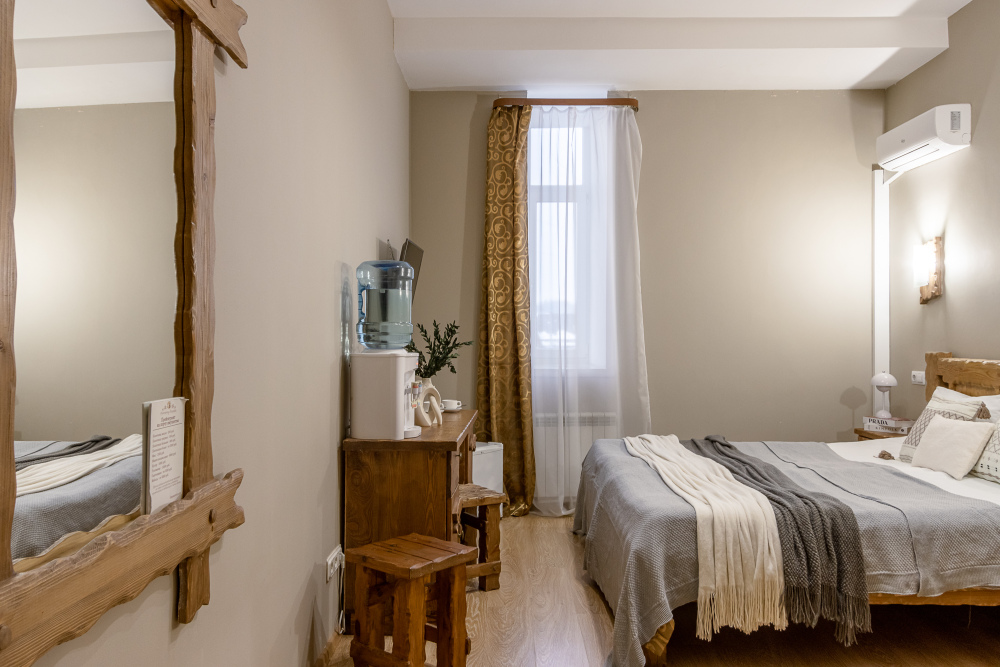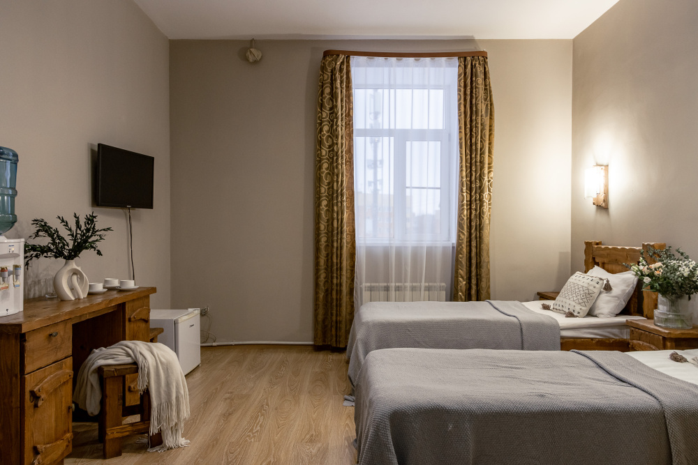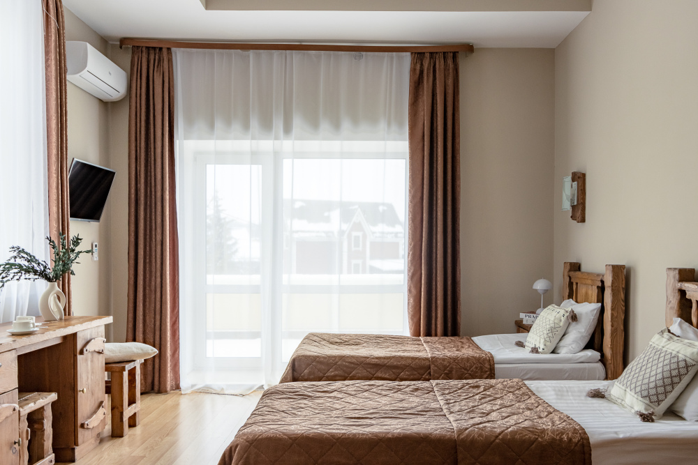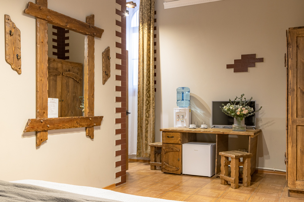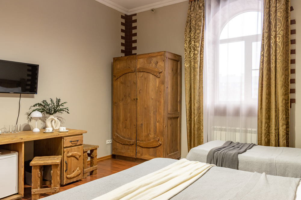 Номерной фонд состоит из 31 номера категорий: Стандарт, Семейный и Улучшенный. Все они оснащены: телевизором, мини-холодильником, кулером с питьевой водой, кондиционером, шкафом, сейфом и гигиеническим набором.