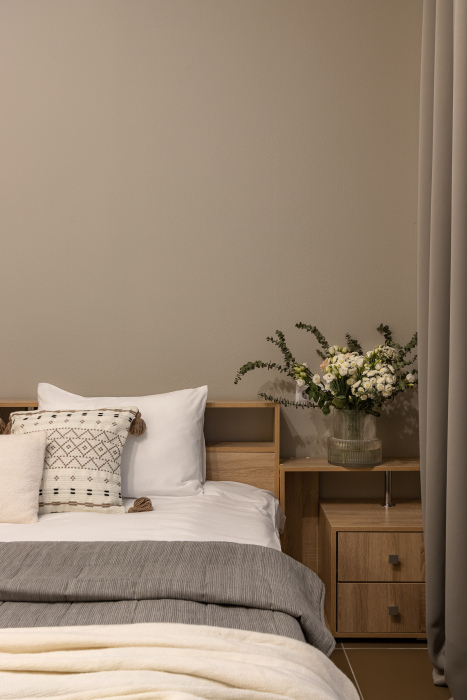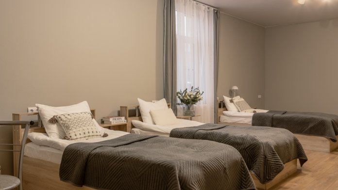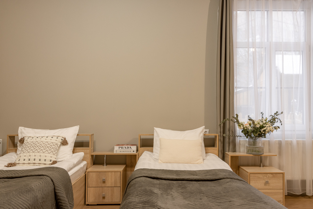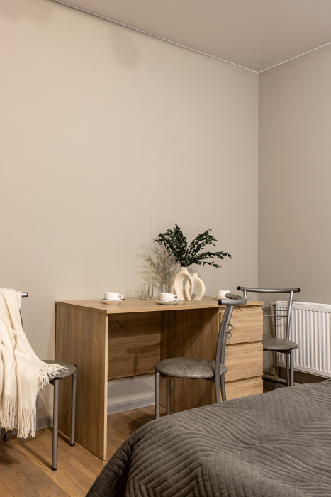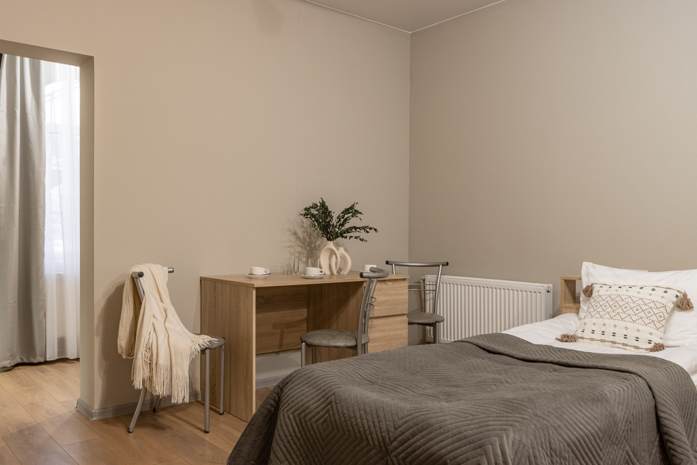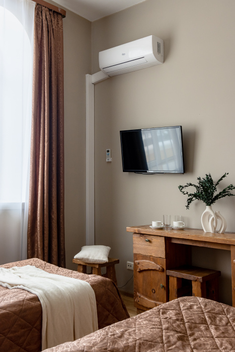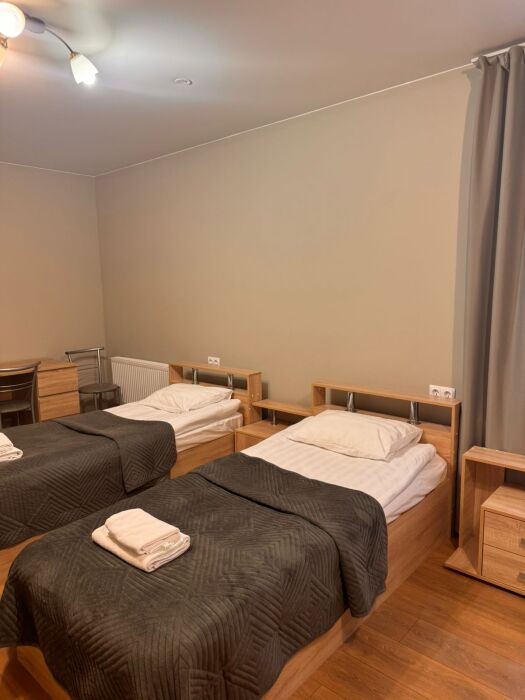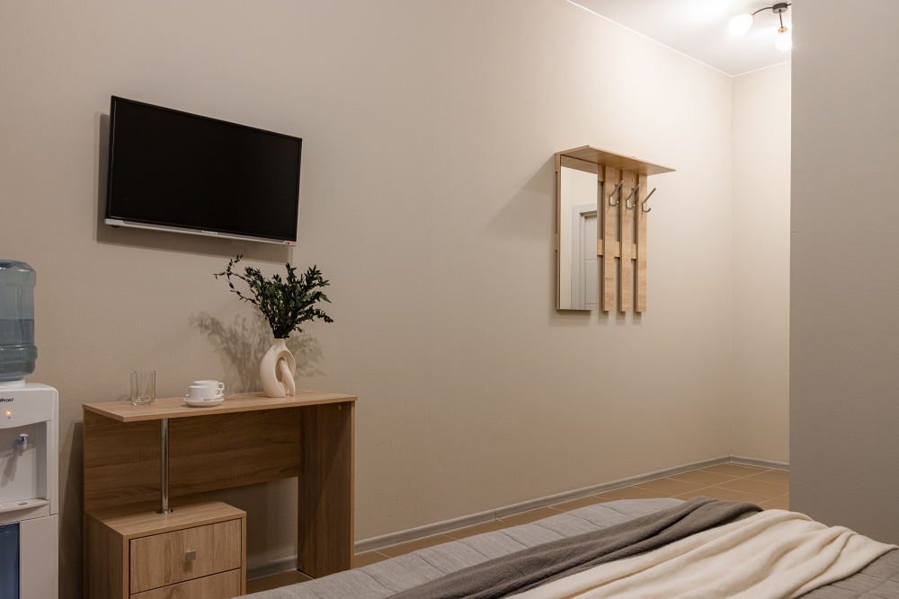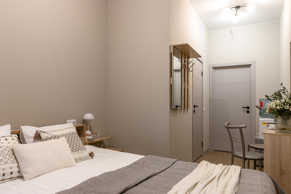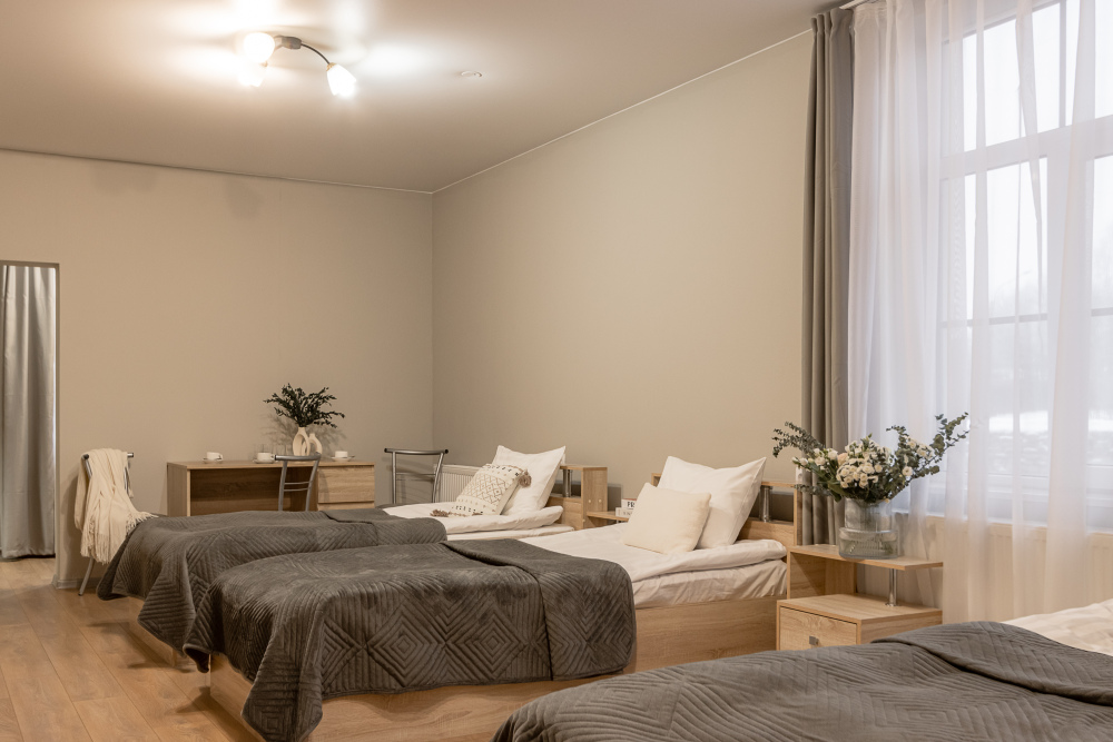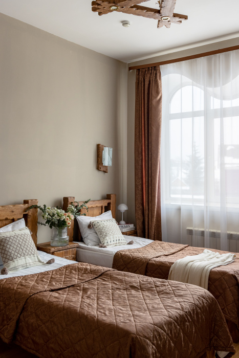 Номерной фонд состоит из 31 номера категорий: Стандарт, Семейный и Улучшенный. Все они оснащены: телевизором, мини-холодильником, кулером с питьевой водой, кондиционером, шкафом, сейфом и гигиеническим набором.