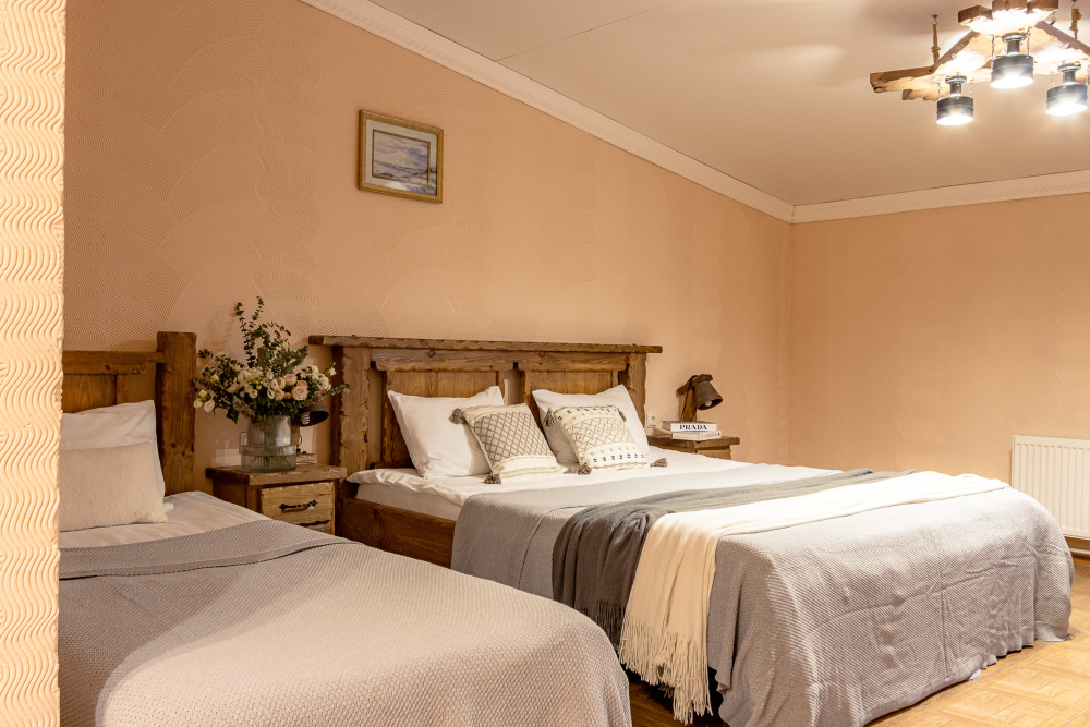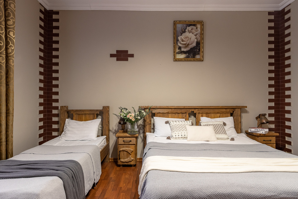 или 1 двуспальная кровать и 1 односпальная кровать.