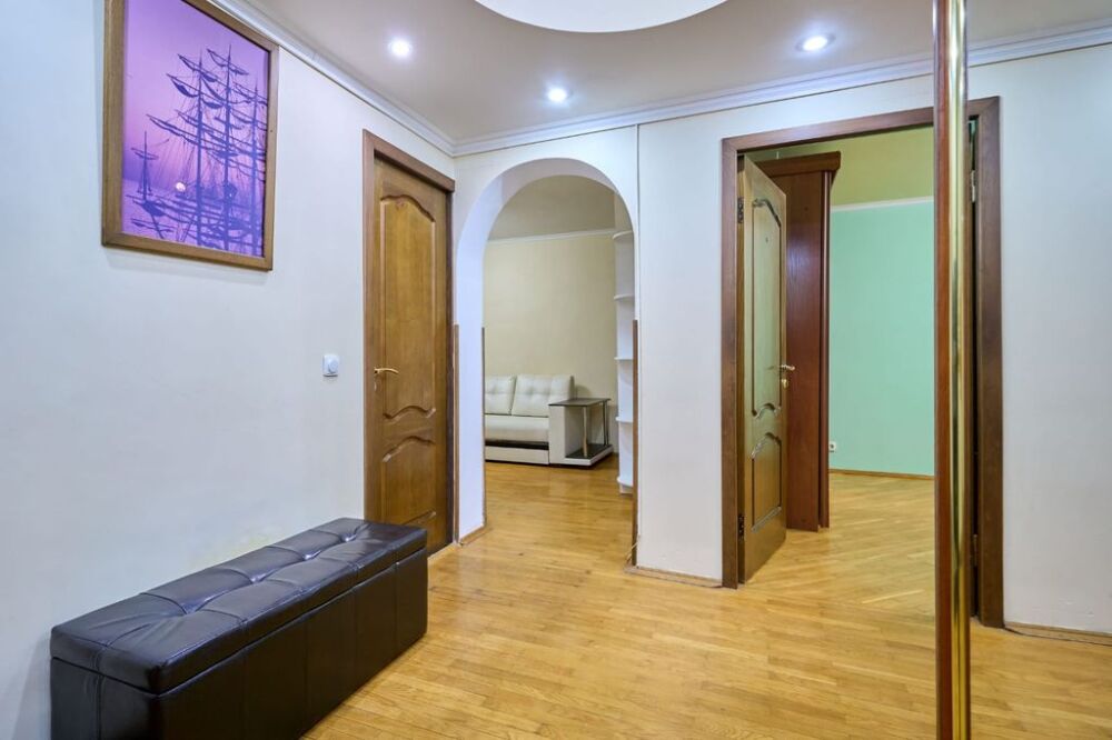 Квартира просторная оборудована всем необходимым для комфортного проживания: 2 телевизора, кондиционер, холодильник, 3 шкафа, предоставляем постельное белье и полотенца, фен, посуда, микроволновая печь.