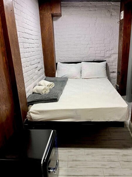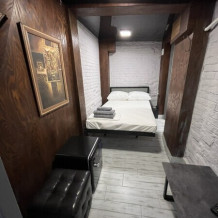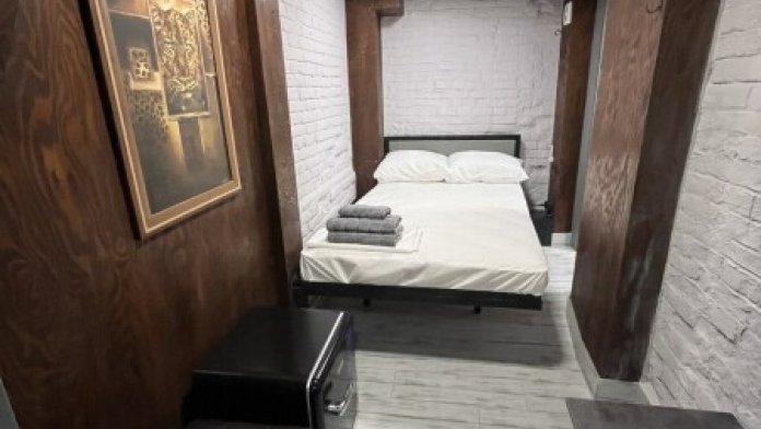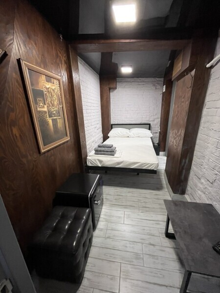 Стандартный одноместный номер без окна со всеми удобствами: свой санузел с предметами личной гигиены и феном, полуторная кровать, постельное белье и полотенца, большой телевизор, кондиционер, бесплатный WI-FI, общая кухня на территории.