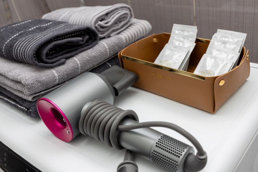 Просторные ванные комнаты с феном, свежими полотенцами и косметическими принадлежностями.
