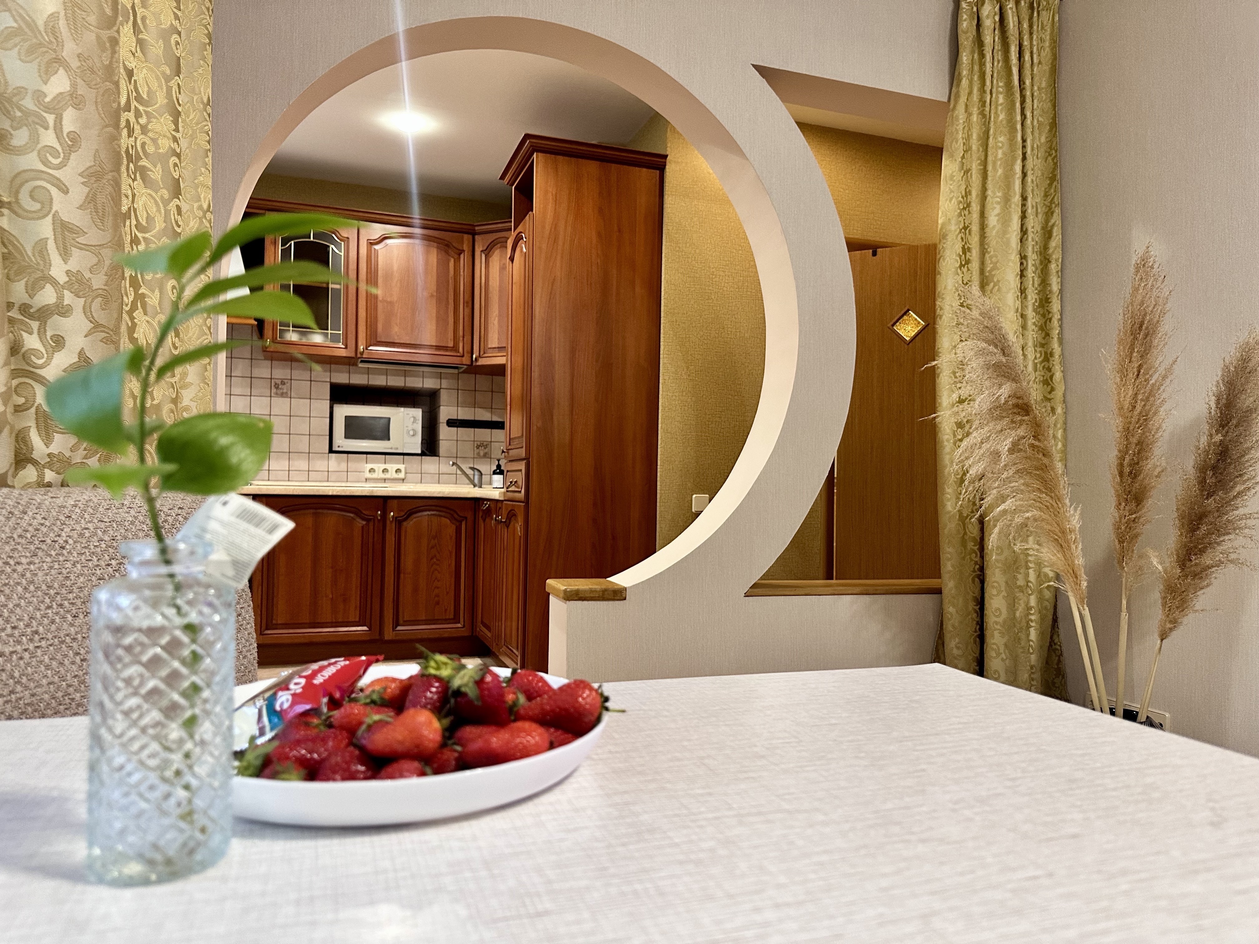 Современная и оснащенная кухня: техника, посуда и всё необходимое для быстрого приготовления завтраков, обедов или ужинов. Здесь всё для Вашего удобства.