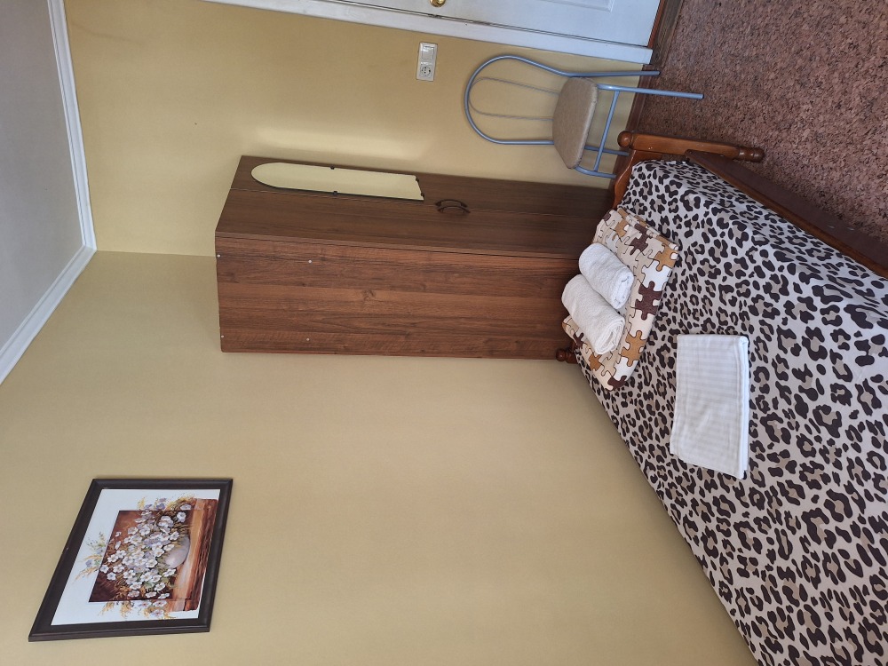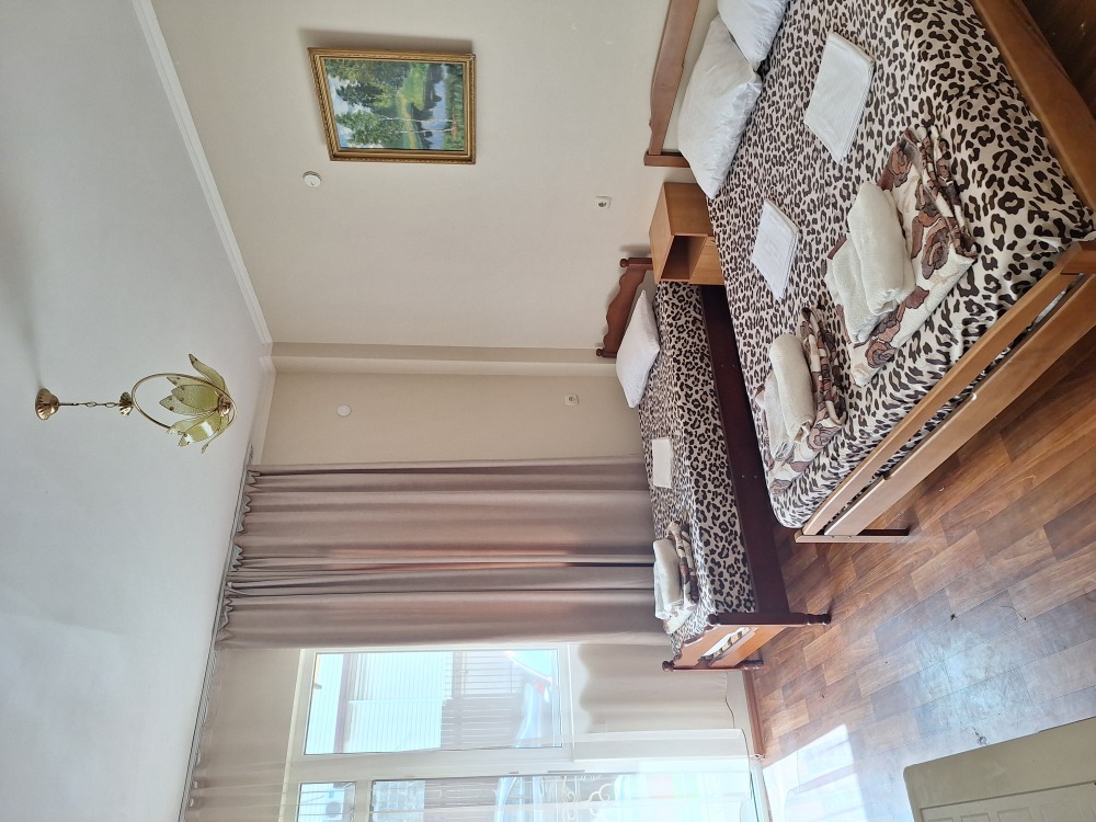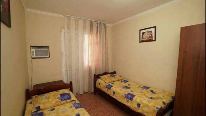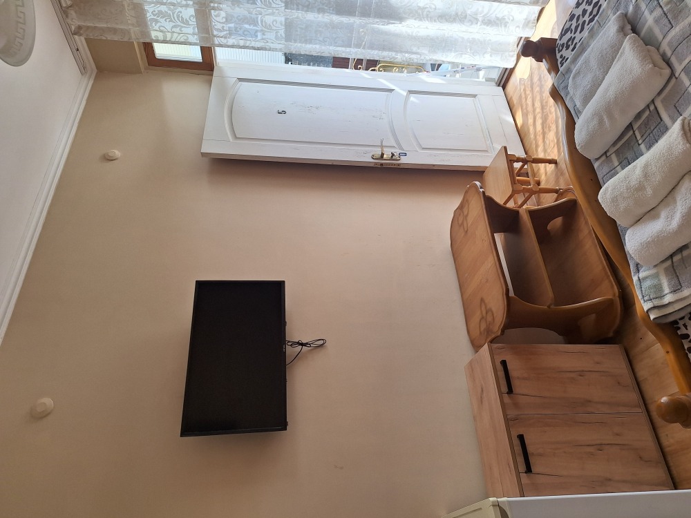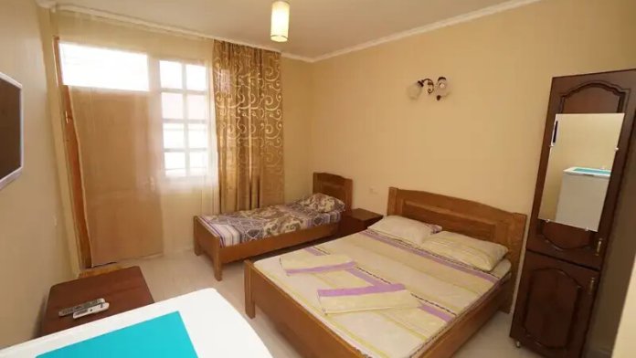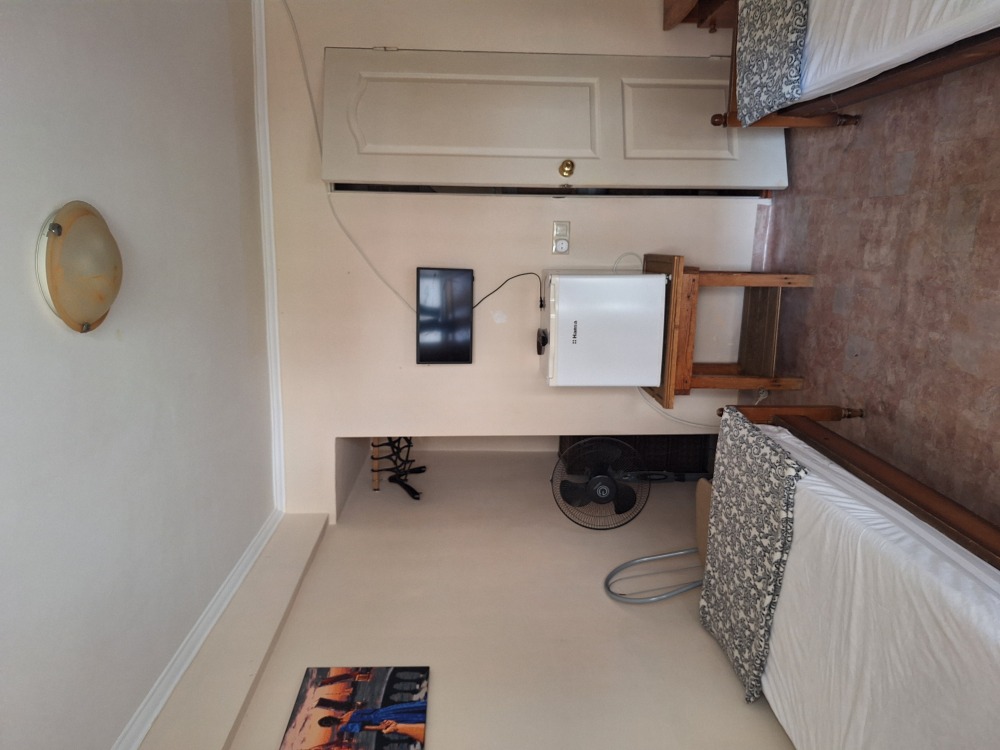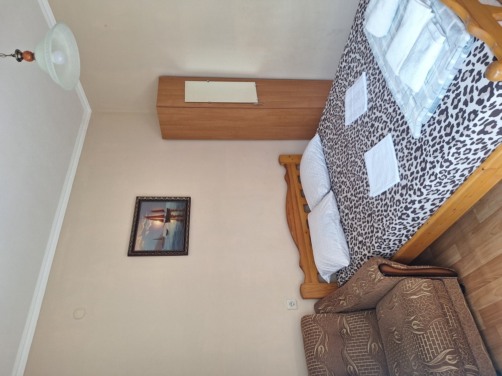 В номере телевизор, вентилятор,,2кровати холодильник, стол, тумбочка.