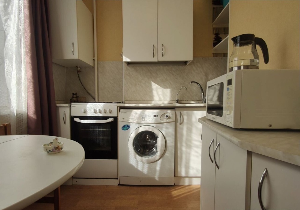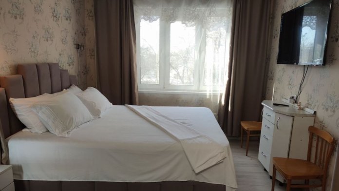 В отдельной комнате стоит две большие двухспальные кровати с высокими матрасами , и одноместное раскладное кресло-кровать, холодильник, мобильный кондиционер, плазменный телевизор. После каждого гостя проводится уборка, меняются постельное белье и полотенца. Кухня оснащена газовой плитой, микроволновой печью, чайником, обеденным столом и посудой, имеется бесплатный чай, кофе, сахар, в холодильнике питьевая артезианская вода. В квартире имеется домофон, так что если Вы приехали не одни, у Вас не возникнет проблем с ключами.