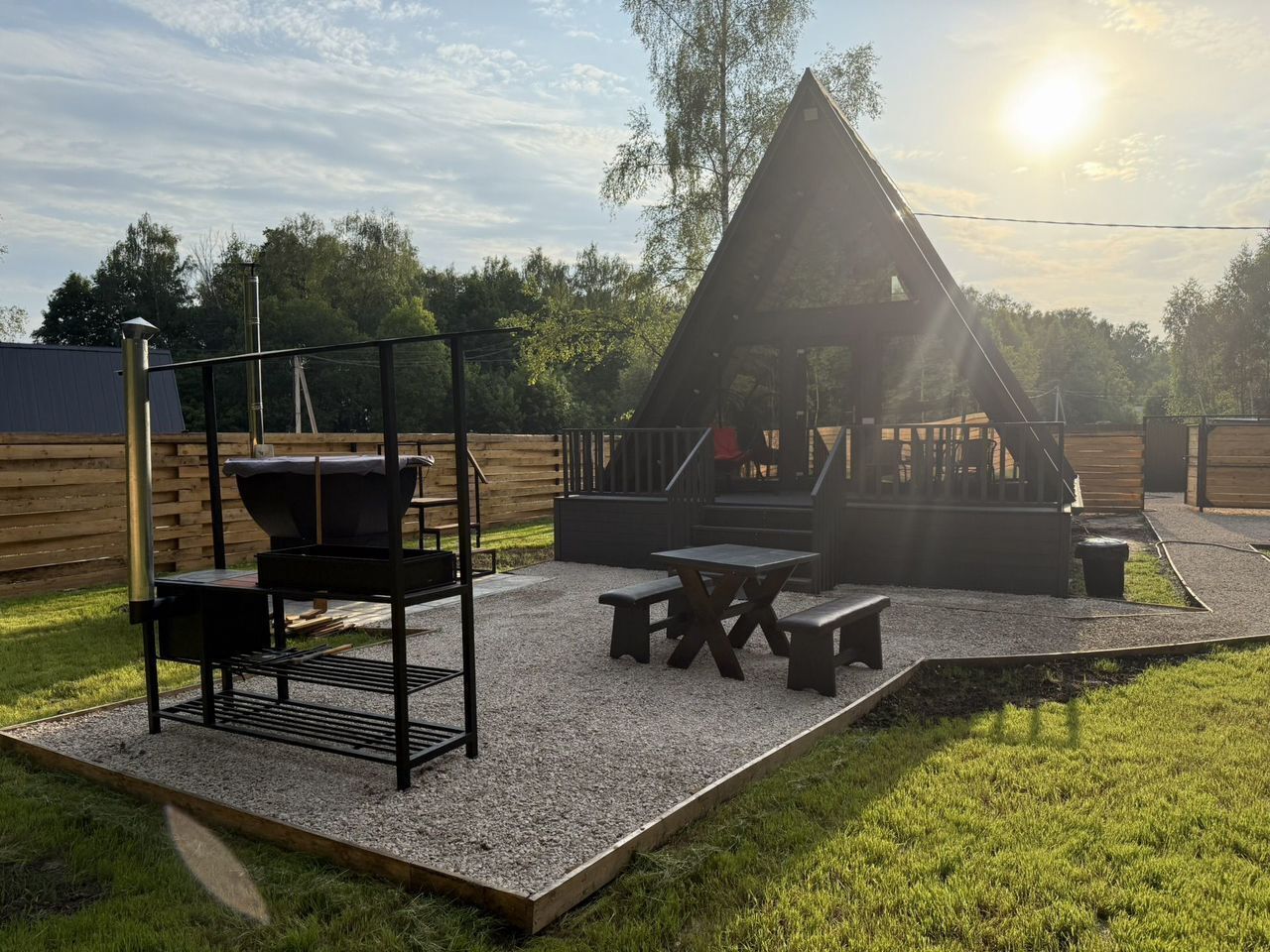 В доме четыре спальных места, а также имеется кабельное/цифровое ТВ. Для удобства гостей предусмотрены средства гигиены и постельное бельё. На территории есть терраса, где можно наслаждаться свежим воздухом и природой. Также обустроена зона мангала с казаном, где можно приготовить любимые блюда и очень уютное место для вечерних посиделок у красивого костра.