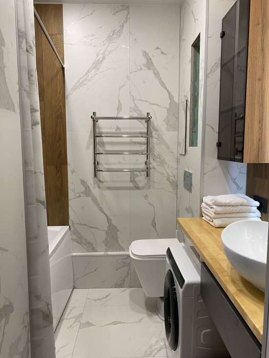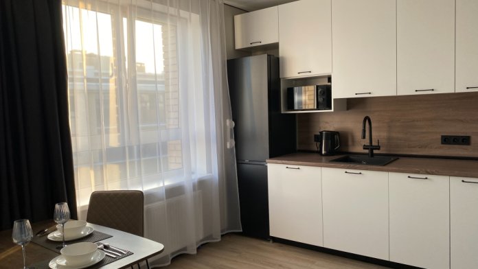 Вся мебель и техника новые. Студия оснащена всем необходимым для комфортного проживания: чайник, микроволновка, холодильник, посудомоечная машина, варочная поверхность, вытяжка, фильтр для воды, стиральная машинка (гель для стирки и кондиционер), ТВ , утюг.